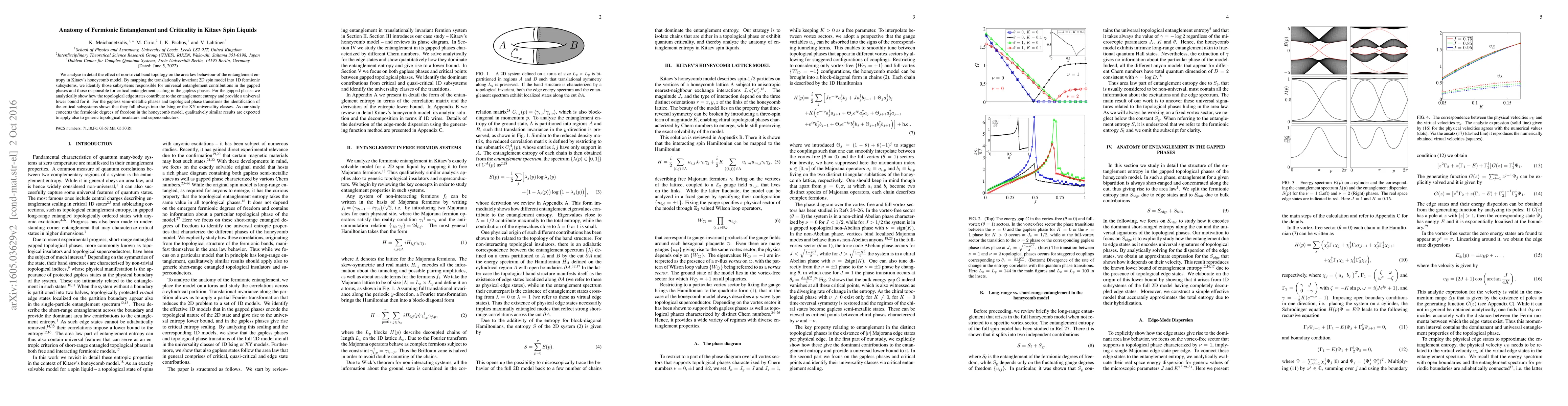 The paper presents a comprehensive analysis of fermionic entanglement and criticality in Kitaev spin liquids, mapping 2D spin models into 1D fermionic subsystems.