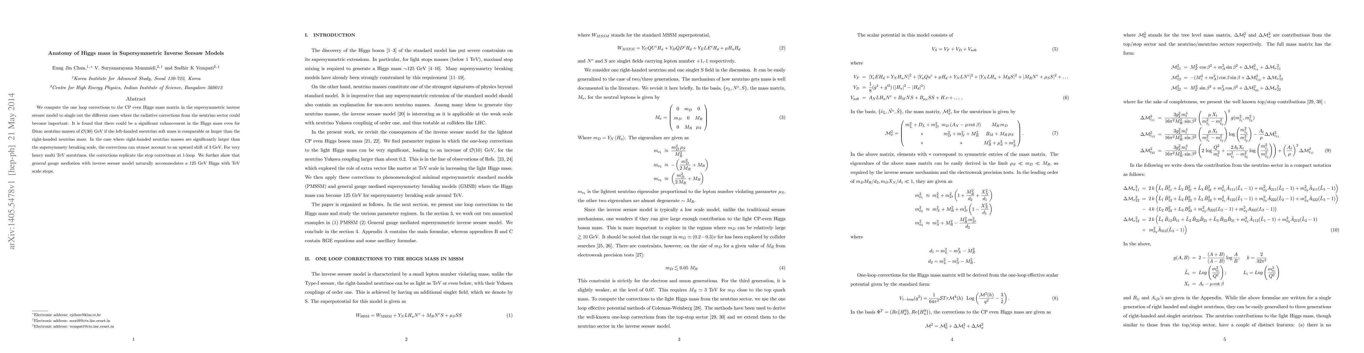 This paper investigates one-loop corrections to the CP even Higgs mass in supersymmetric inverse seesaw models, finding significant enhancements in Higgs mass for certain neutrino mass scenarios. The study concludes that the left-handed sneutrino mass can notably influence the Higgs mass, especially when comparable to right-handed neutrino masses.