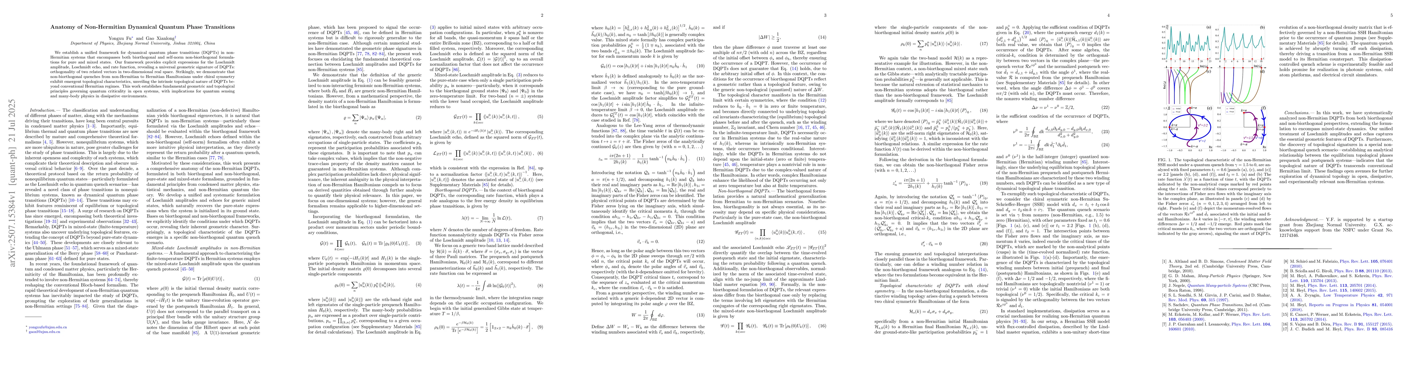 The paper presents a comprehensive framework for analyzing DQPTs in non-Hermitian systems, introducing explicit expressions for key quantities like the Loschmidt amplitude, echo, and rate function, and revealing a universal geometric signature of DQPTs.