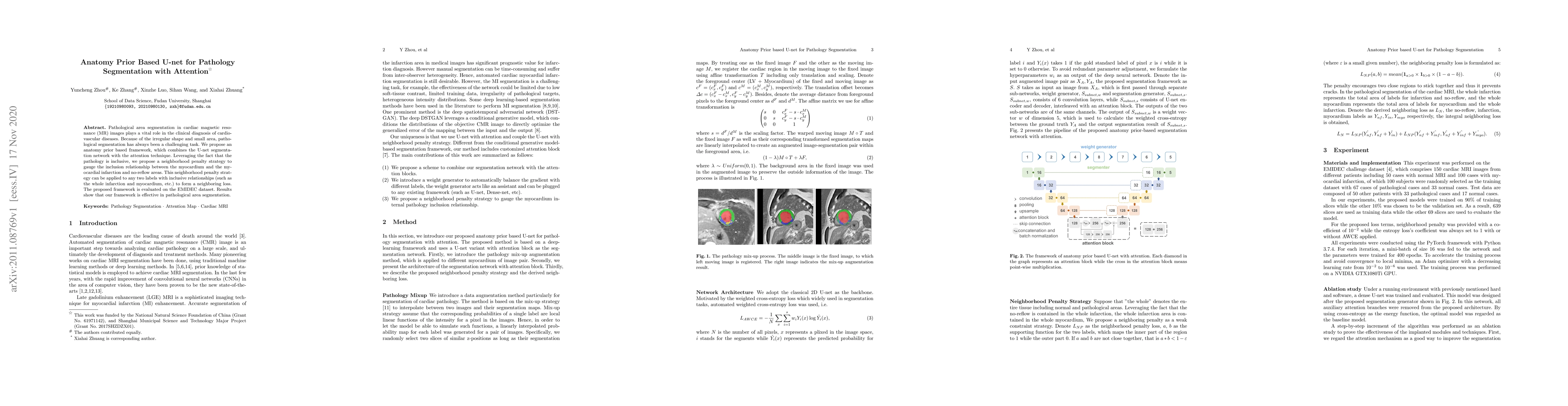 This paper proposes an anatomy prior based U-net with attention for segmenting pathological areas in cardiac MR images, addressing the challenge of irregular shapes and small areas. The framework includes a neighborhood penalty strategy to enhance segmentation accuracy, demonstrating effectiveness on the EMIDEC dataset.