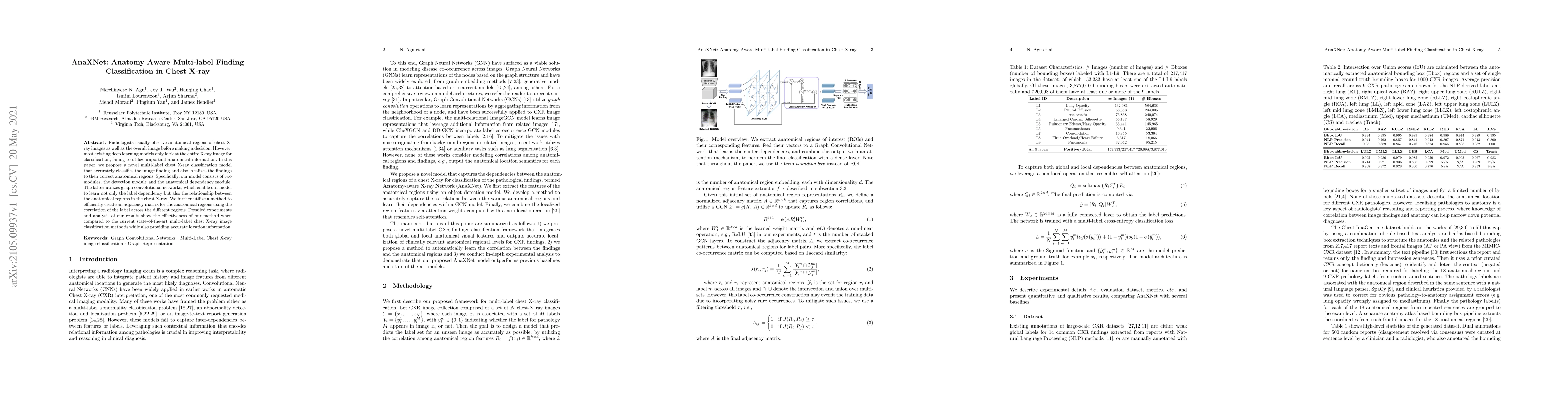 The paper proposes AnaXNet, a multi-label classification model for chest X-rays that localizes findings to anatomical regions, using a detection module and an anatomical dependency module with graph convolutional networks. Experimental results demonstrate superior performance compared to existing methods.
