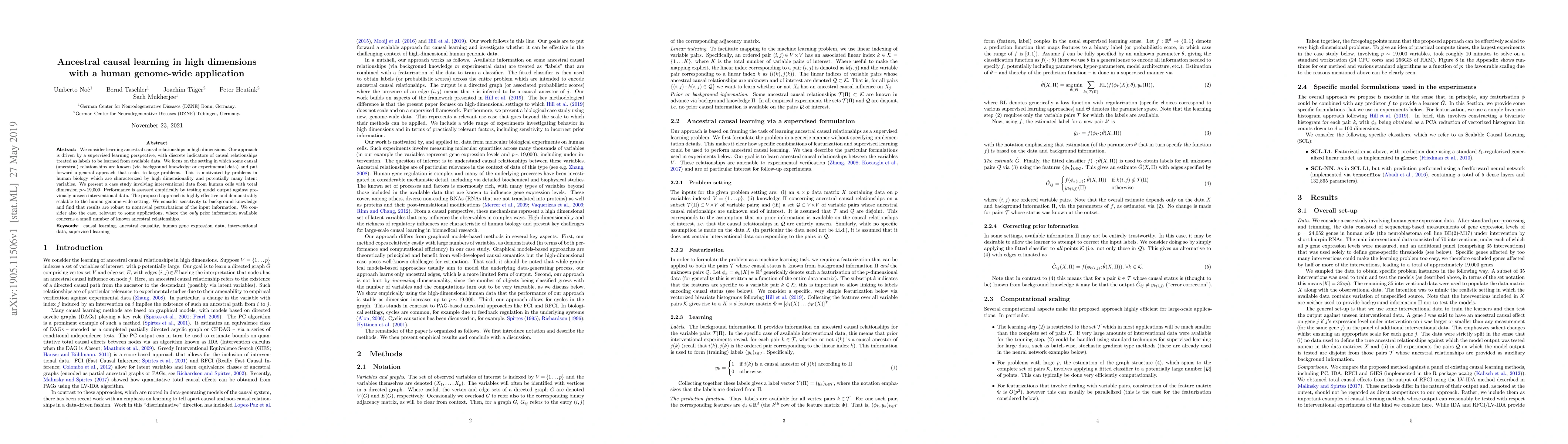 This paper proposes a scalable supervised learning method for identifying ancestral causal relationships in high-dimensional datasets, demonstrated through a genome-wide study in human biology. The approach is shown to be effective and robust, even when only a few known ancestral relationships are available.