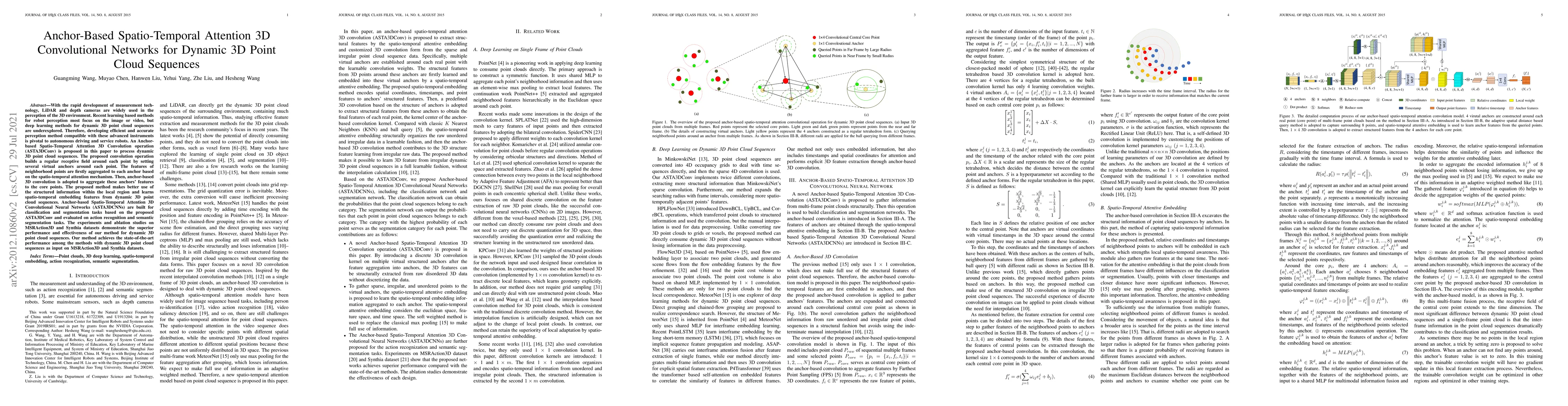 This paper proposes an Anchor-based Spatio-Temporal Attention 3D Convolutional Neural Network (ASTA3DCNN) for processing dynamic 3D point cloud sequences, achieving state-of-the-art performance on action recognition and semantic segmentation tasks. The method utilizes an innovative ASTA3DConv operation to efficiently extract spatio-temporal features from dynamic point clouds.