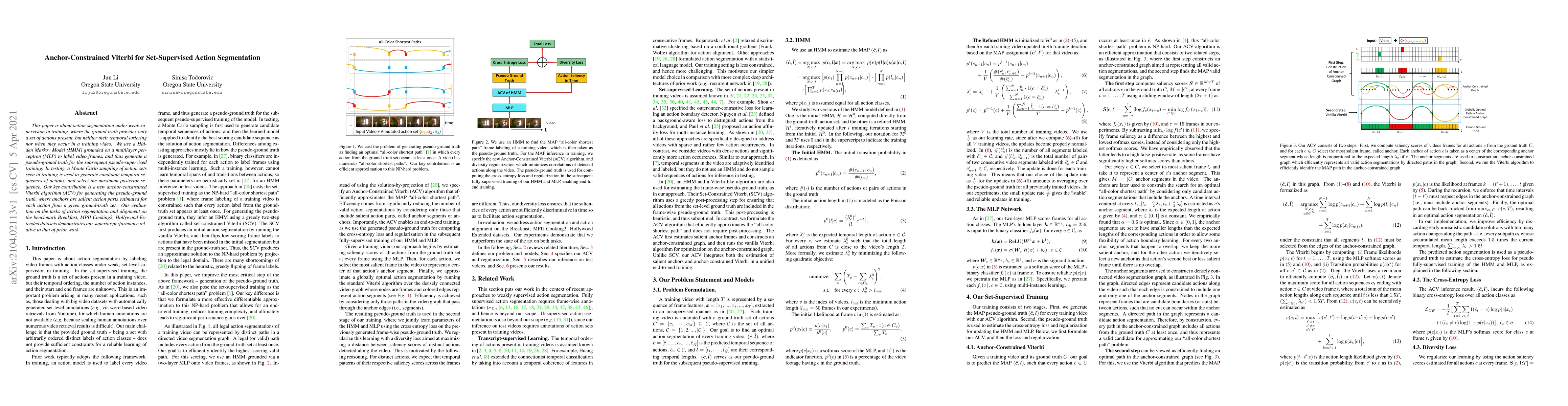 This paper proposes an anchor-constrained Viterbi algorithm for segmenting actions under weak supervision, using HMMs and MLPs to generate pseudo-ground truth. The method outperforms prior work on action segmentation and alignment tasks in benchmark datasets.
