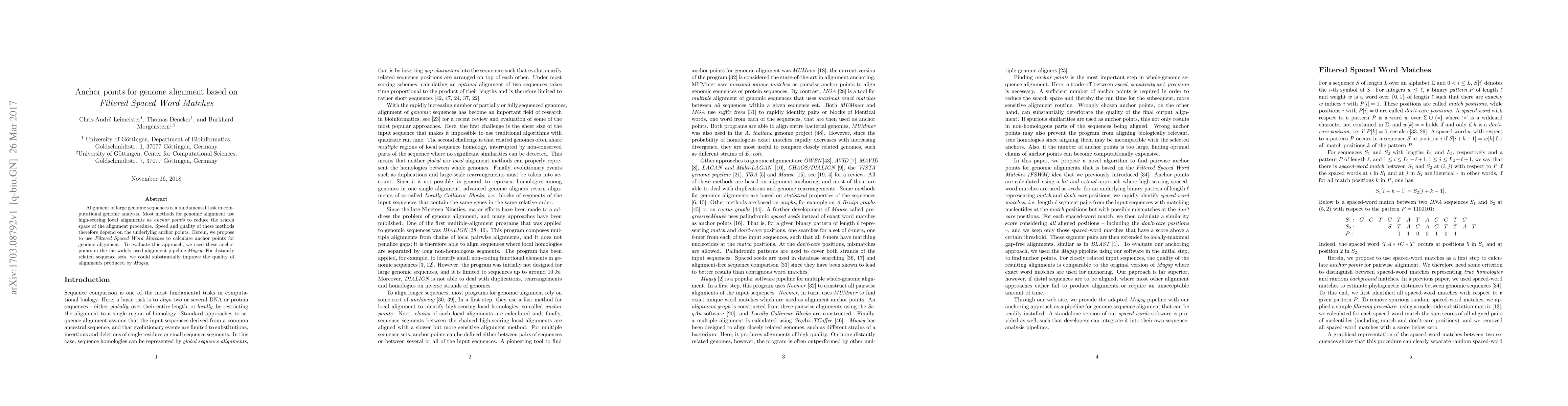 Researchers proposed using Filtered Spaced Word Matches to improve genome alignment quality, significantly enhancing results for distantly related sequence sets.