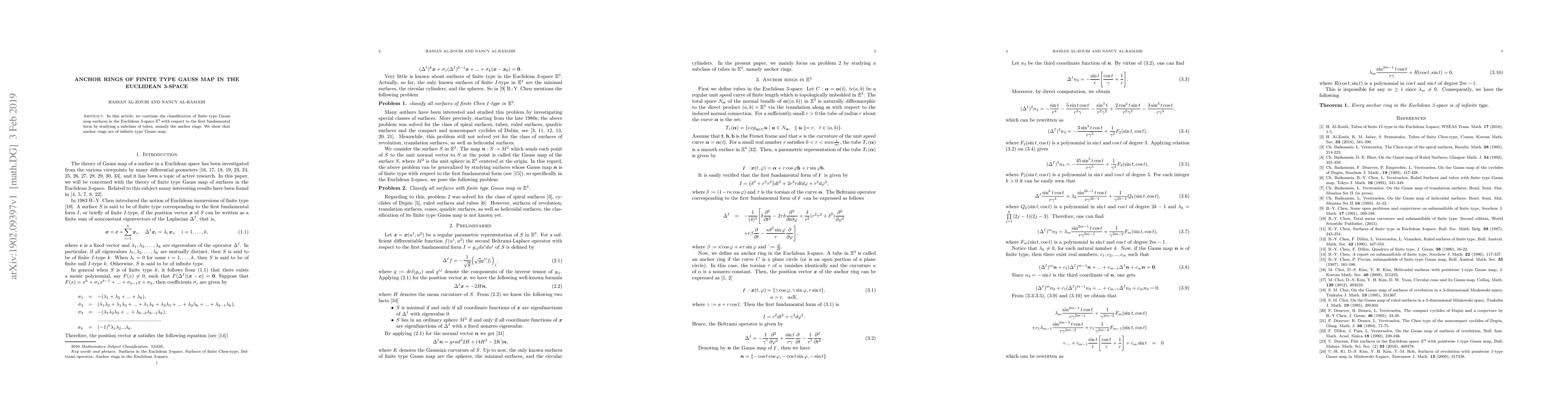 Summary: This paper classifies finite type Gauss map surfaces in Euclidean 3-space, focusing on anchor rings, a subclass of tubes, and demonstrates that anchor rings exhibit infinite type Gauss maps.