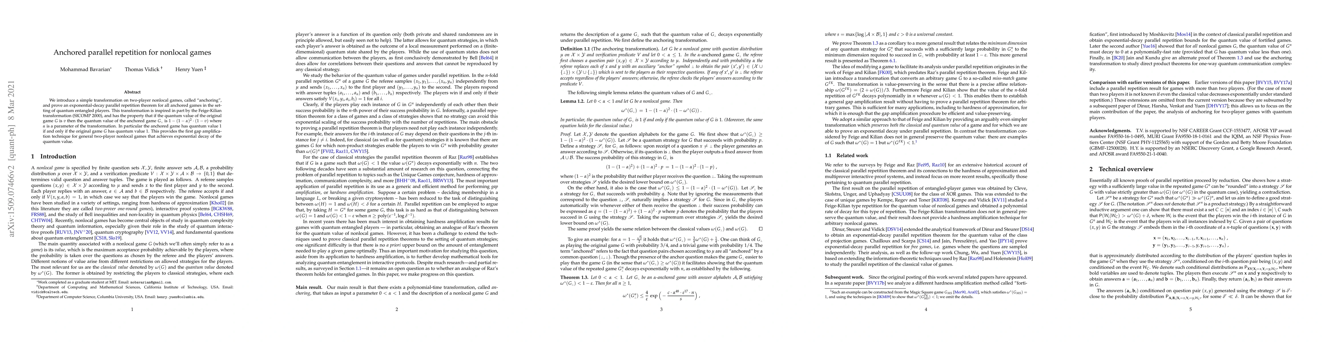 This paper introduces a "anchoring" transformation for two-player nonlocal games, proving an exponential-decay parallel repetition theorem for anchored games in quantum settings. The transformation maintains a specific relationship between the quantum values of the original and anchored games, providing the first gap amplification technique for general two-player nonlocal games.
