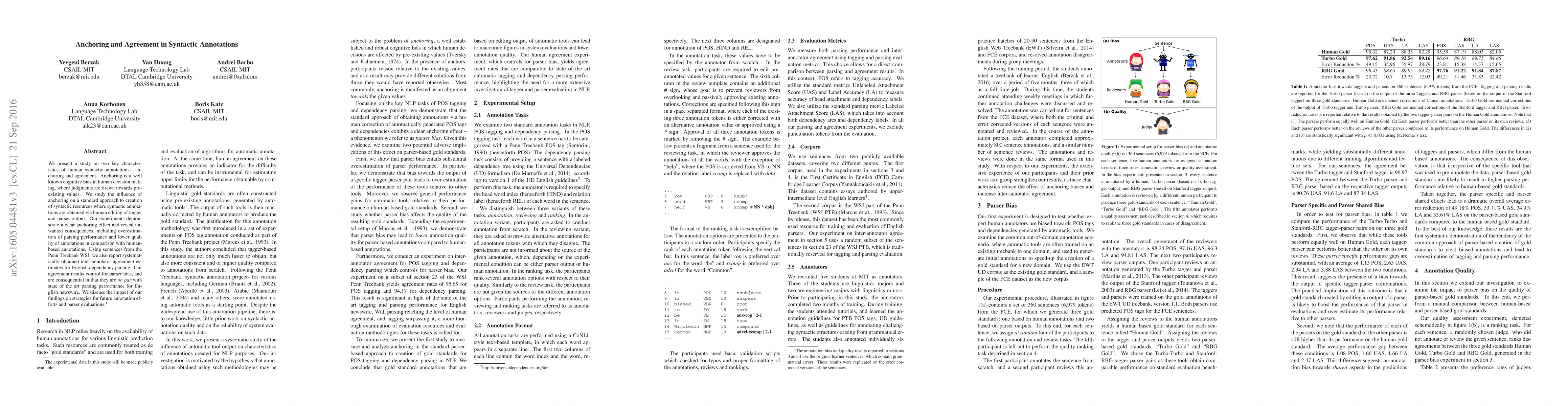 This study investigates the cognitive bias of anchoring and its impact on syntactic annotations, revealing that it can lead to overestimation of parsing performance and lower annotation quality. The research also provides inter-annotator agreement estimates for English dependency parsing, which are crucial for refining future annotation strategies and parser evaluations. For more details, refer directly to the original paper.