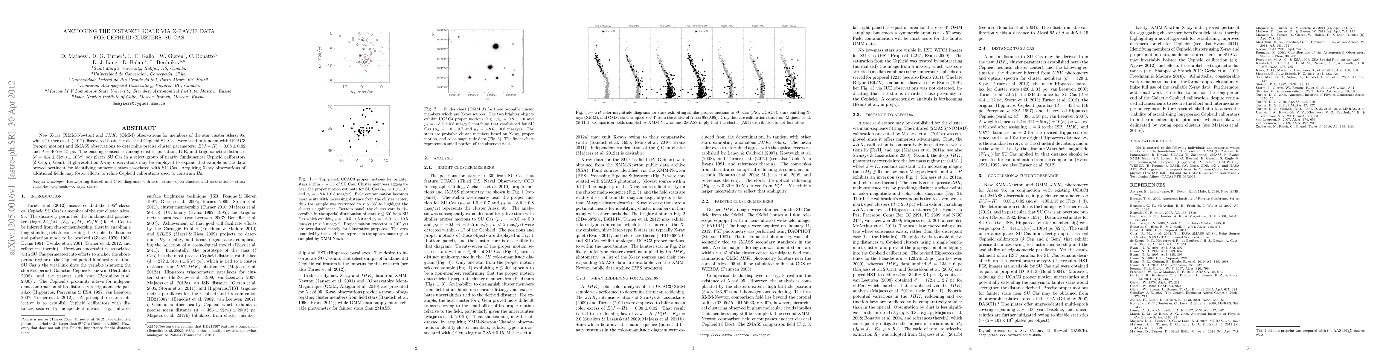 This paper combines X-ray and infrared data to determine the precise distance and parameters of the star cluster Alessi 95, which hosts the Cepheid SU Cas. The consensus distance estimate of 405±15 pc positions SU Cas among nearby fundamental Cepheid calibrators, aiding in the refinement of Cepheid calibrations essential for constraining the Hubble constant (H_0).