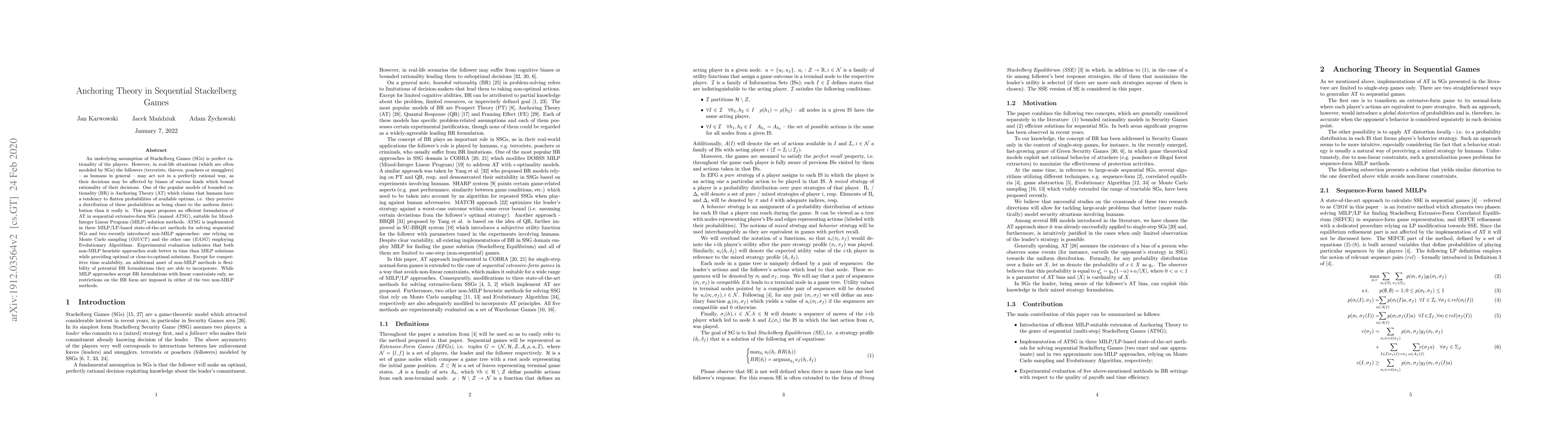 An underlying assumption of Stackelberg Games (SGs) is perfect rationality of the players. However, in real-life situations (which are often modeled by SGs) the followers (terrorists, thieves, poachers or smugglers) -- as humans in general -- may act not in a perfectly rational way, as their decisions may be affected by biases of various kinds which bound rationality of their decisions. One of the popular models of bounded rationality (BR) is Anchoring Theory (AT) which claims that humans have a tendency to flatten probabilities of available options, i.e. they perceive a distribution of these probabilities as being closer to the uniform distribution than it really is. This paper proposes an efficient formulation of AT in sequential extensive-form SGs (named ATSG), suitable for Mixed-Integer Linear Program (MILP) solution methods. ATSG is implemented in three MILP/LP-based state-of-the-art methods for solving sequential SGs and two recently introduced non-MILP approaches: one relying on Monte Carlo sampling (O2UCT) and the other one (EASG) employing Evolutionary Algorithms. Experimental evaluation indicates that both non-MILP heuristic approaches scale better in time than MILP solutions while providing optimal or close-to-optimal solutions. Except for competitive time scalability, an additional asset of non-MILP methods is flexibility of potential BR formulations they are able to incorporate. While MILP approaches accept BR formulations with linear constraints only, no restrictions on the BR form are imposed in either of the two non-MILP methods.