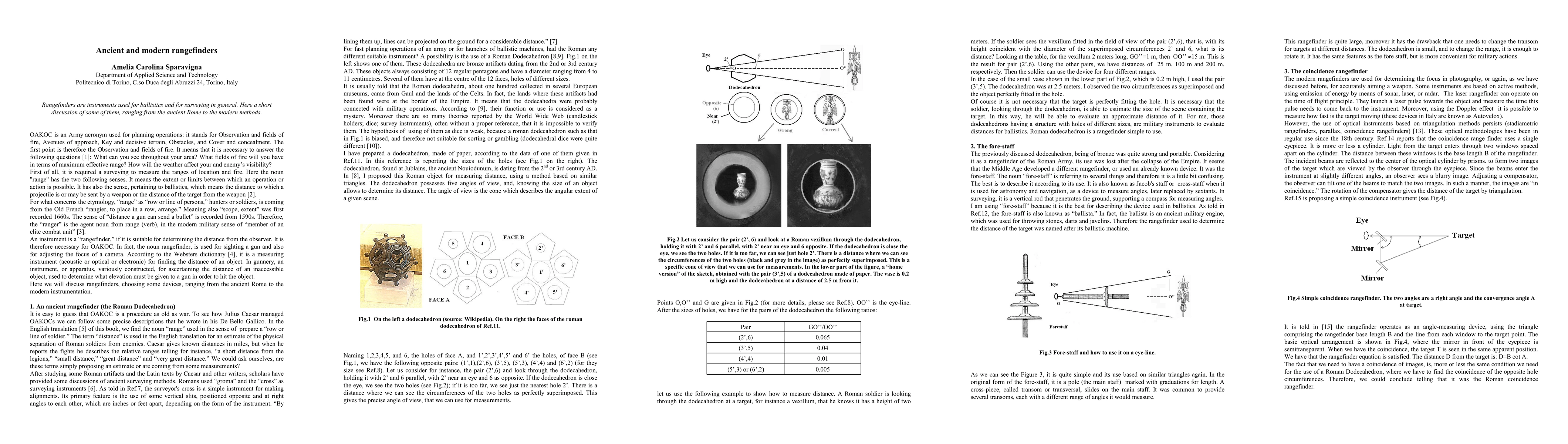 Rangefinders are instruments used for ballistics and for surveying in general. Here a short discussion of some of them, ranging from the ancient Rome to the modern methods.
