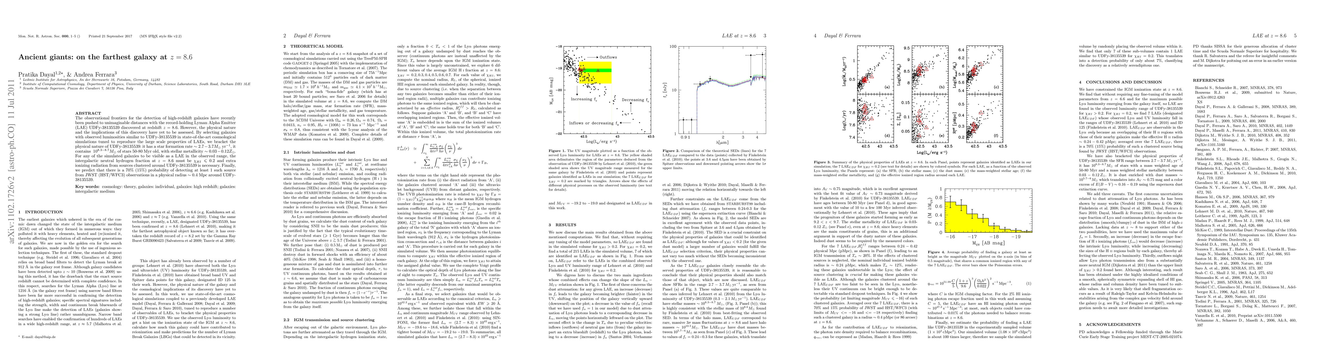 The observational frontiers for the detection of high-redshift galaxies have recently been pushed to unimaginable distances with the record-holding Lyman Alpha Emitter (LAE) UDFy-38135539 discovered at redshift z=8.6. However, the physical nature and the implications of this discovery have yet to be assessed. By selecting galaxies with observed luminosities similar to UDFy-38135539 in state-of-the-art cosmological simulations tuned to reproduce the large scale properties of LAEs, we bracket the physical nature of UDFy-38135539: it has a star formation rate ~ 2.7-3.7 solar masses/yr, it contains ~ 10^{8.3-8.7} solar mass of stars 50-80 Myr old, with stellar metallicity ~ 0.03-0.12 of the solar value. For any of the simulated galaxies to be visible as a LAE in the observed range, the intergalactic neutral hydrogen fraction at z=8.6 must be <= 0.2 and extra ionizing radiation from sources clustered around UDFy-38135539 is necessary. Finally, we predict that there is a 70% (15%) probability of detecting at least 1 such source from JWST (HST/WFC3) observations in a physical radius ~ 0.4 Mpc around UDFy-38135539.