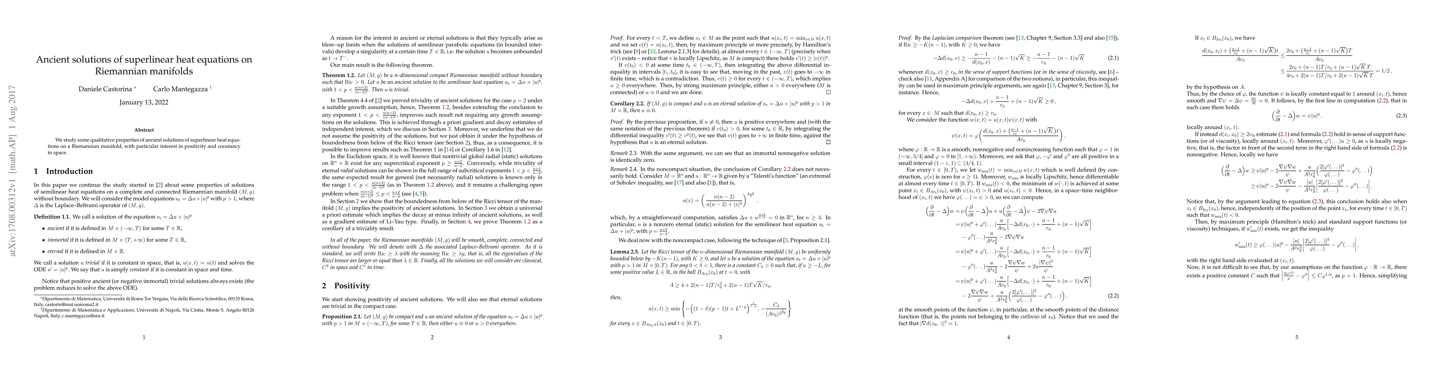 This paper explores the qualitative characteristics of ancient solutions to superlinear heat equations on Riemannian manifolds, focusing on their positivity and spatial constancy. The findings contribute to understanding the behavior of such solutions over time.