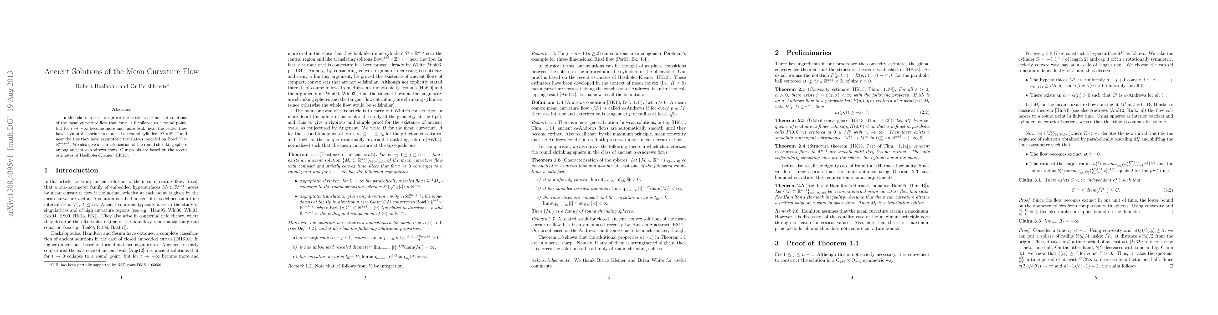 In this short article, we prove the existence of ancient solutions of the mean curvature flow that for t -> 0 collapse to a round point, but for t -> -infinity become more and more oval: near the center they have asymptotic shrinkers modeled on round cylinders S^j x R^n-j and near the tips they have asymptotic translators modeled on Bowl^j+1 x R^n-j-1. We also give a characterization of the round shrinking sphere among ancient alpha-Andrews flows. Our proofs are based on the recent estimates of Haslhofer-Kleiner.