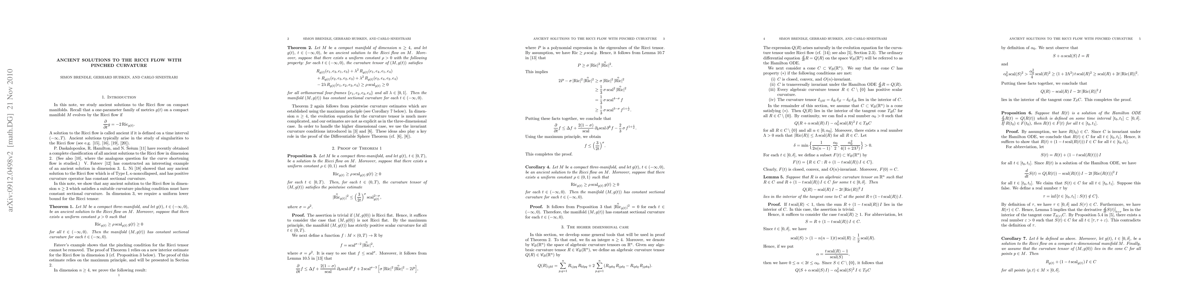 The paper analyzes ancient solutions to the Ricci flow with a pinched curvature condition, demonstrating that such solutions must have constant sectional curvature under specific conditions.