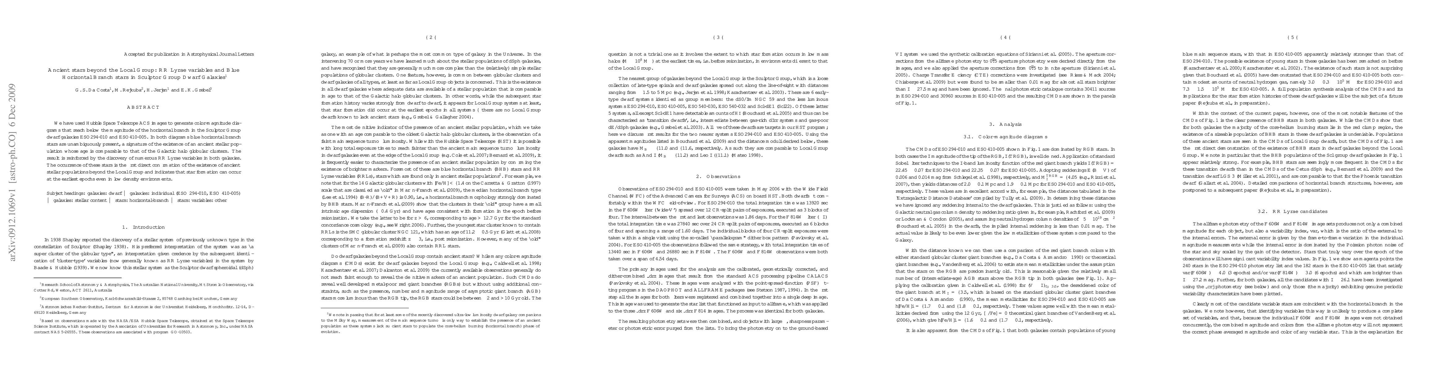 This study uses Hubble Space Telescope images to identify blue horizontal branch stars and RR Lyrae variables in Sculptor Group dwarf galaxies, confirming the presence of ancient stellar populations comparable in age to Galactic halo globular clusters. This discovery highlights star formation in early epochs even in low-density environments beyond the Local Group.