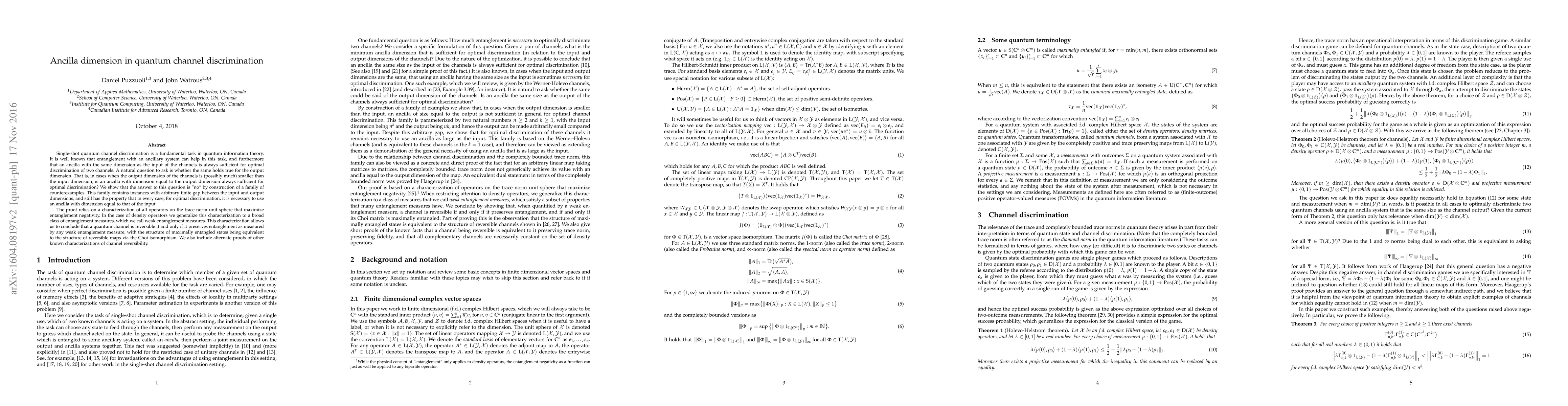 Single-shot quantum channel discrimination is a fundamental task in quantum information theory. It is well known that entanglement with an ancillary system can help in this task, and furthermore that an ancilla with the same dimension as the input of the channels is always sufficient for optimal discrimination of two channels. A natural question to ask is whether the same holds true for the output dimension. That is, in cases when the output dimension of the channels is (possibly much) smaller than the input dimension, is an ancilla with dimension equal to the output dimension always sufficient for optimal discrimination? We show that the answer to this question is "no" by construction of a family of counterexamples. This family contains instances with arbitrary finite gap between the input and output dimensions, and still has the property that in every case, for optimal discrimination, it is necessary to use an ancilla with dimension equal to that of the input. The proof relies on a characterization of all operators on the trace norm unit sphere that maximize entanglement negativity. In the case of density operators we generalize this characterization to a broad class of entanglement measures, which we call weak entanglement measures. This characterization allows us to conclude that a quantum channel is reversible if and only if it preserves entanglement as measured by any weak entanglement measure, with the structure of maximally entangled states being equivalent to the structure of reversible maps via the Choi isomorphism. We also include alternate proofs of other known characterizations of channel reversibility.