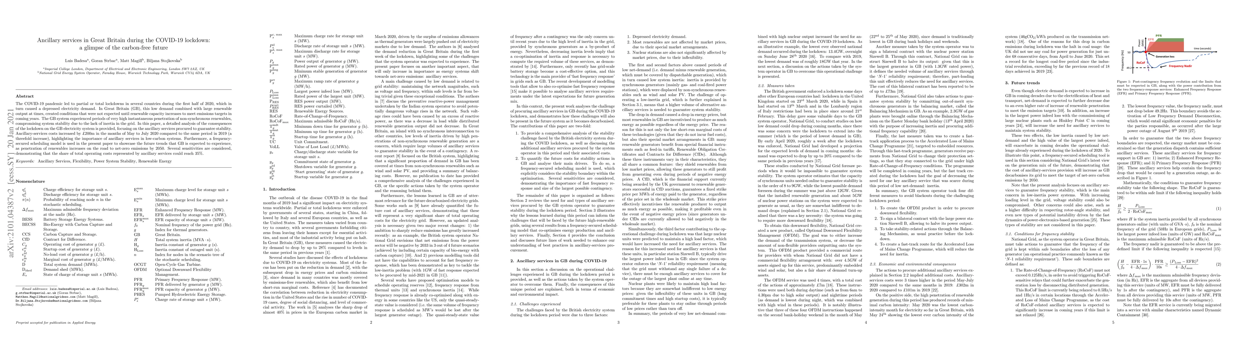 The COVID-19 pandemic led to partial or total lockdowns in several countries during the first half of 2020, which in turn caused a depressed electricity demand. In Great Britain (GB), this low demand combined with large renewable output at times, created conditions that were not expected until renewable capacity increases to meet emissions targets in coming years. The GB system experienced periods of very high instantaneous penetration of non-synchronous renewables, compromising system stability due to the lack of inertia in the grid. In this paper, a detailed analysis of the consequences of the lockdown on the GB electricity system is provided, focusing on the ancillary services procured to guarantee stability. Ancillary-services costs increased by {\pounds}200m in the months of May to July 2020 compared to the same period in 2019 (a threefold increase), highlighting the importance of ancillary services in low-carbon systems. Furthermore, a frequency-secured scheduling model is used in the present paper to showcase the future trends that GB is expected to experience, as penetration of renewables increases on the road to net-zero emissions by 2050. Several sensitivities are considered, demonstrating that the share of total operating costs represented by ancillary services could reach 35%.