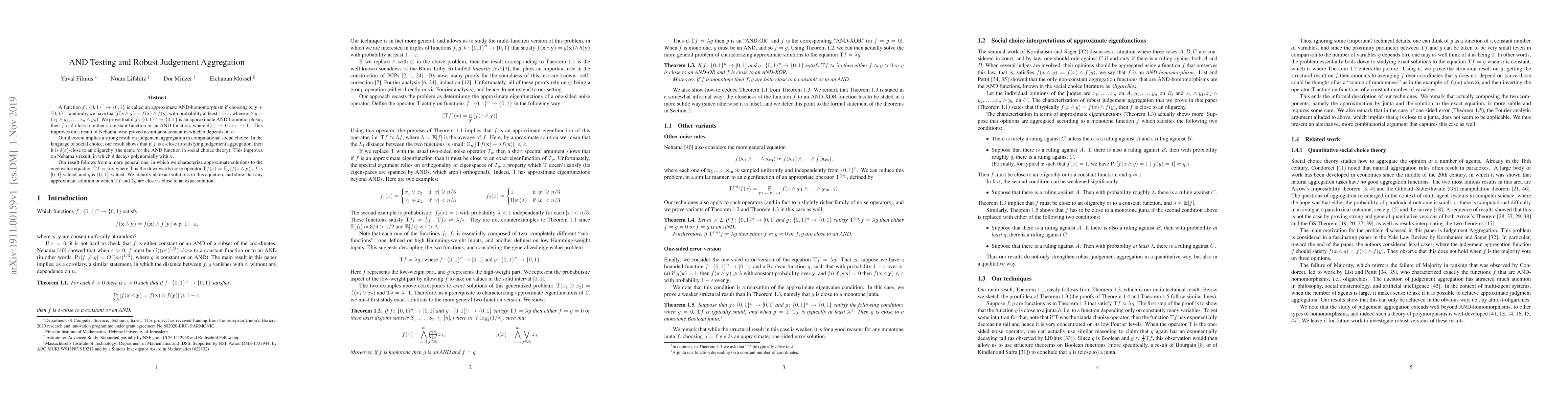 A function $f\colon\{0,1\}^n\to \{0,1\}$ is called an approximate AND-homomorphism if choosing ${\bf x},{\bf y}\in\{0,1\}^n$ randomly, we have that $f({\bf x}\land {\bf y}) = f({\bf x})\land f({\bf y})$ with probability at least $1-\epsilon$, where $x\land y = (x_1\land y_1,\ldots,x_n\land y_n)$. We prove that if $f\colon \{0,1\}^n \to \{0,1\}$ is an approximate AND-homomorphism, then $f$ is $\delta$-close to either a constant function or an AND function, where $\delta(\epsilon) \to 0$ as $\epsilon\to0$. This improves on a result of Nehama, who proved a similar statement in which $\delta$ depends on $n$. Our theorem implies a strong result on judgement aggregation in computational social choice. In the language of social choice, our result shows that if $f$ is $\epsilon$-close to satisfying judgement aggregation, then it is $\delta(\epsilon)$-close to an oligarchy (the name for the AND function in social choice theory). This improves on Nehama's result, in which $\delta$ decays polynomially with $n$. Our result follows from a more general one, in which we characterize approximate solutions to the eigenvalue equation $\mathrm T f = \lambda g$, where $\mathrm T$ is the downwards noise operator $\mathrm T f(x) = \mathbb{E}_{{\bf y}}[f(x \land {\bf y})]$, $f$ is $[0,1]$-valued, and $g$ is $\{0,1\}$-valued. We identify all exact solutions to this equation, and show that any approximate solution in which $\mathrm T f$ and $\lambda g$ are close is close to an exact solution.