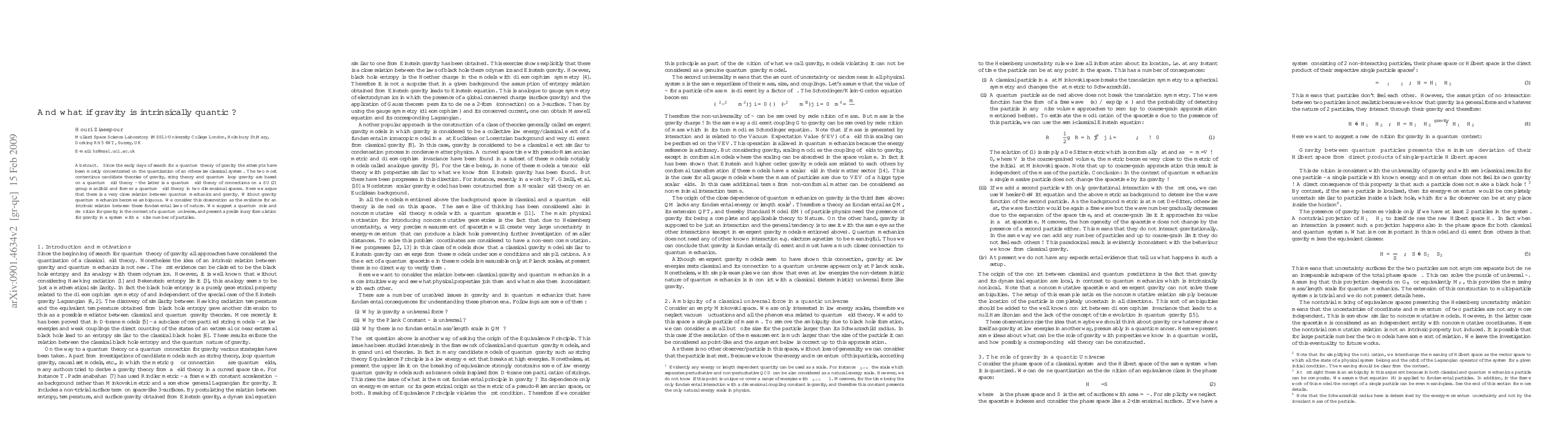 This paper proposes a new perspective on gravity as an intrinsic quantum phenomenon, suggesting a close relation between quantum mechanics and gravity.