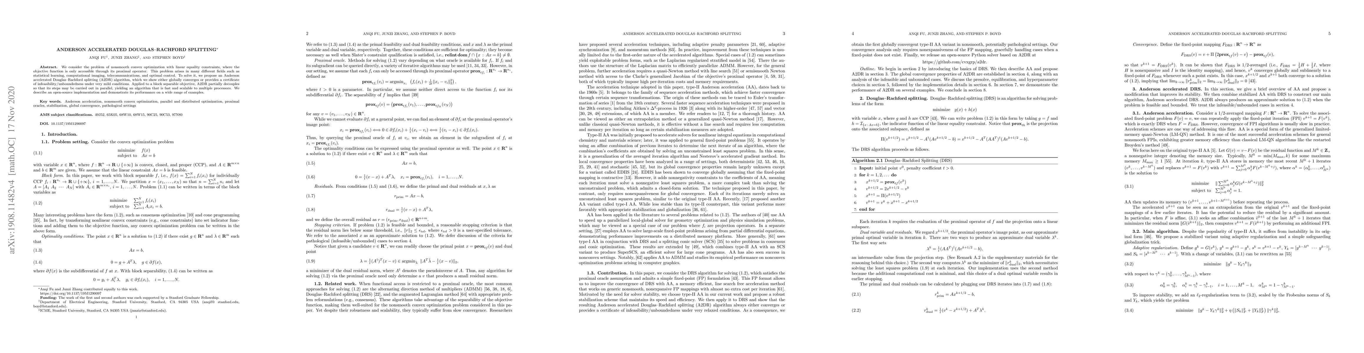 The paper proposes an Anderson accelerated Douglas-Rachford splitting (A2DR) algorithm for solving non-smooth convex optimization problems with linear constraints. The algorithm is shown to either globally converge or provide a certificate of infeasibility/unboundedness under mild conditions, and it is scalable and fast due to parallelizable steps.