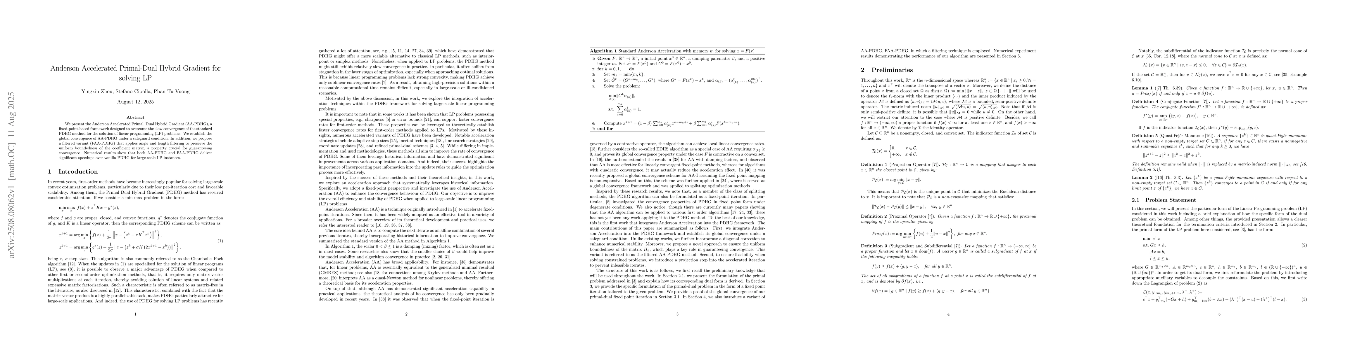 The research proposes Anderson Accelerated Primal-Dual Hybrid Gradient (AA-PDHG) for solving linear programming (LP) problems, reformulating PDHG into a fixed-point framework and incorporating a safeguard mechanism to ensure global convergence.