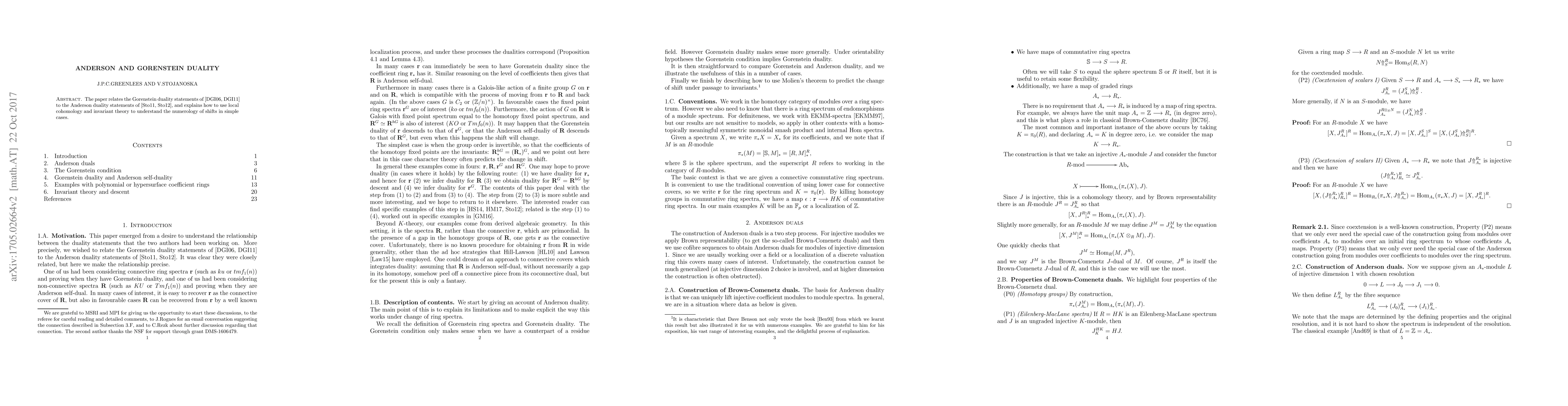 The paper relates the Gorenstein duality statements studied by the first author to the Anderson duality statements studied by the second author, and explains how to use local cohomology and invariant theory to understand the numerology of shifts in simple cases.