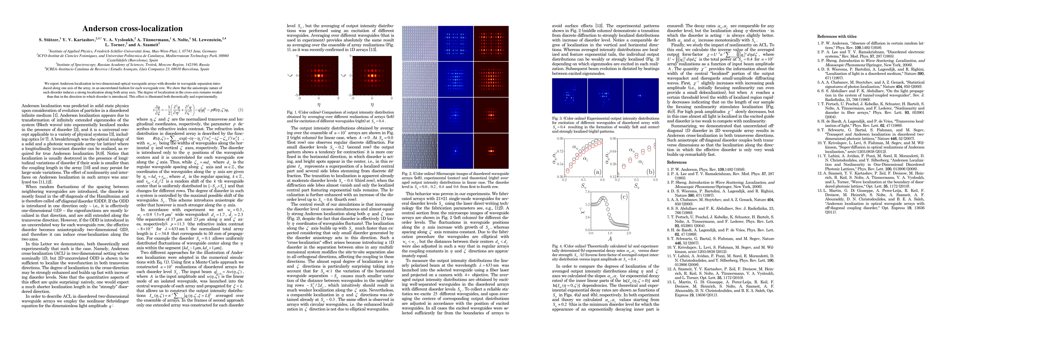 This research demonstrates Anderson localization in 2D optical waveguide arrays with disorder in waveguide separation along one axis, resulting in strong localization along both axes, though weaker in the perpendicular direction. The findings are supported by theoretical and experimental illustrations.