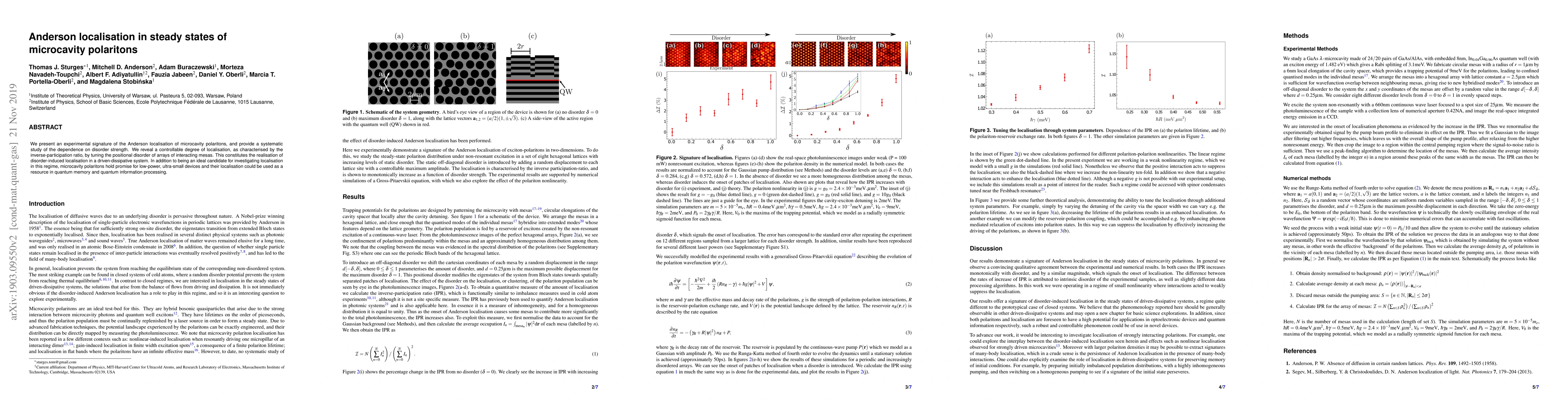 This paper experimentally demonstrates Anderson localisation in microcavity polaritons, showing how disorder strength influences localisation through the inverse-participation ratio. The study highlights the potential of these polaritons for low-power devices and quantum technologies.