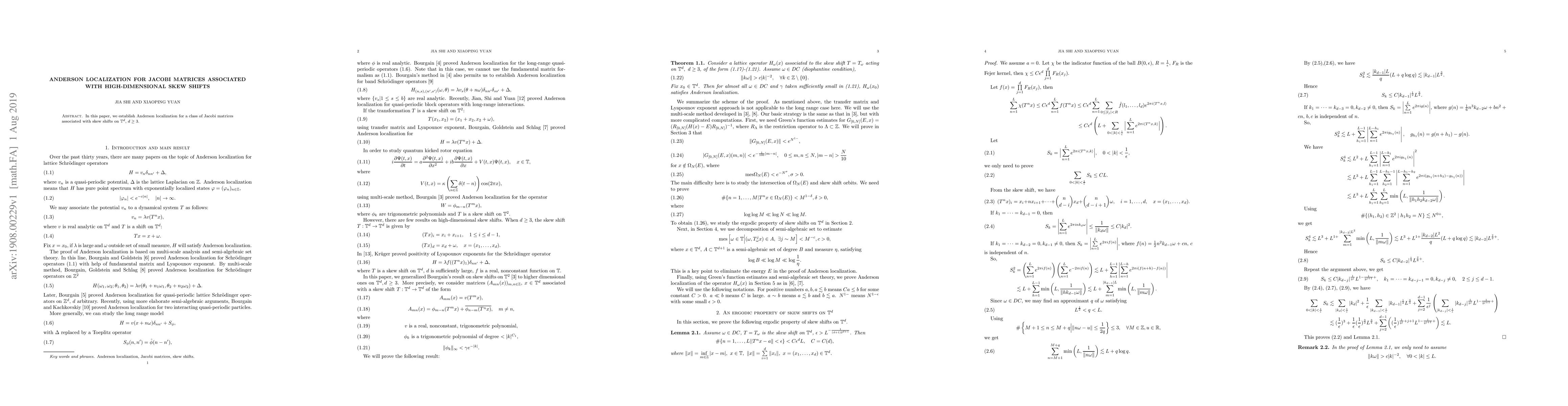 Summary: This paper proves Anderson localization for Jacobi matrices linked to high-dimensional skew shifts on the torus $\mathbb{T}^{d}$, where $d\geq3$, demonstrating the robustness of localization in complex, high-dimensional systems.
