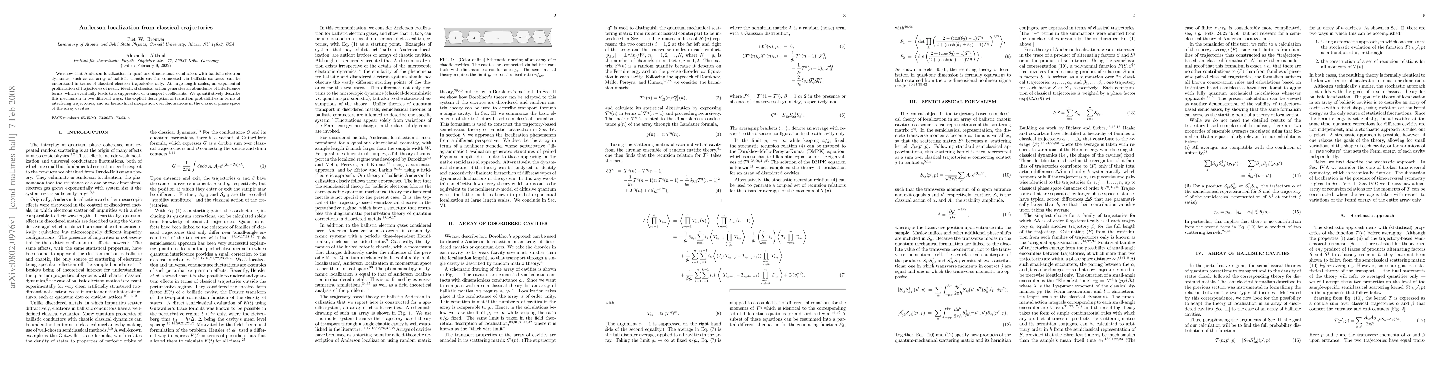 This paper demonstrates that Anderson localization in quasi-one-dimensional conductors can be explained through classical electron trajectories, showing how interference from numerous nearly identical trajectories suppresses transport. The study provides quantitative descriptions using both trajectory-based interference probabilities and hierarchical integration over classical phase space fluctuations.