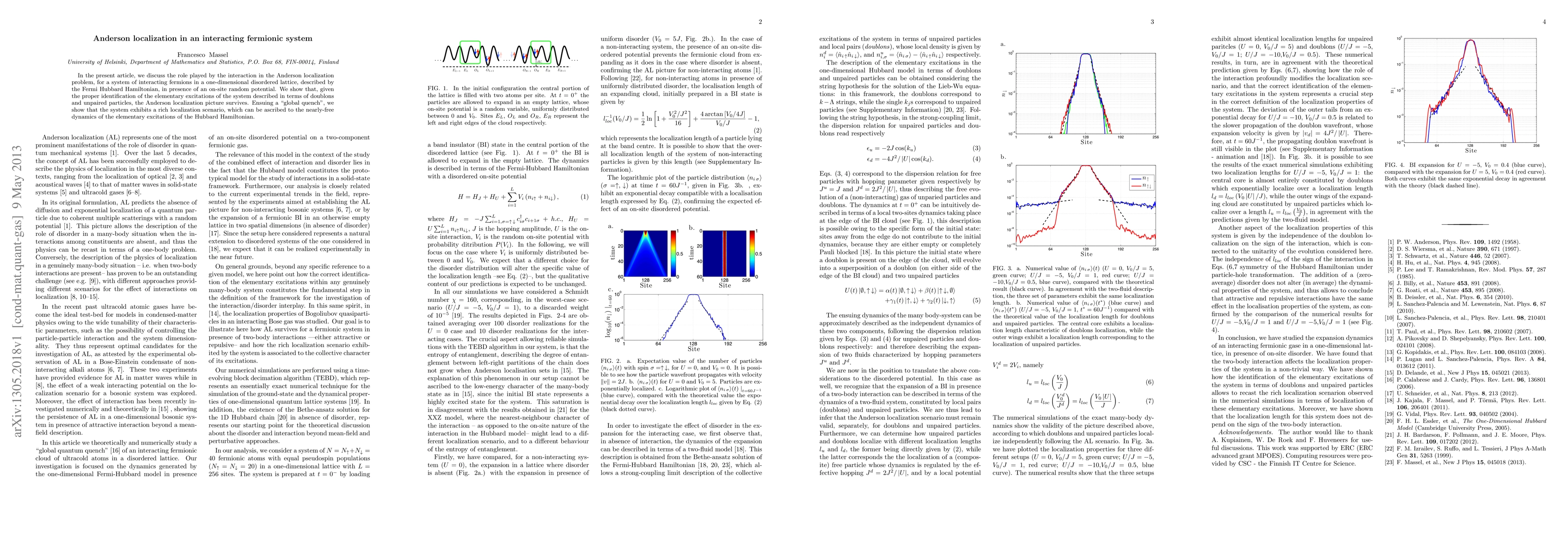 This paper investigates Anderson localization in a one-dimensional disordered lattice of interacting fermions, described by the Fermi Hubbard Hamiltonian, under an on-site random potential. It demonstrates that the localization phenomenon persists even with interactions, characterized by doublons and unpaired particles, and reveals a complex localization scenario post "global quench."