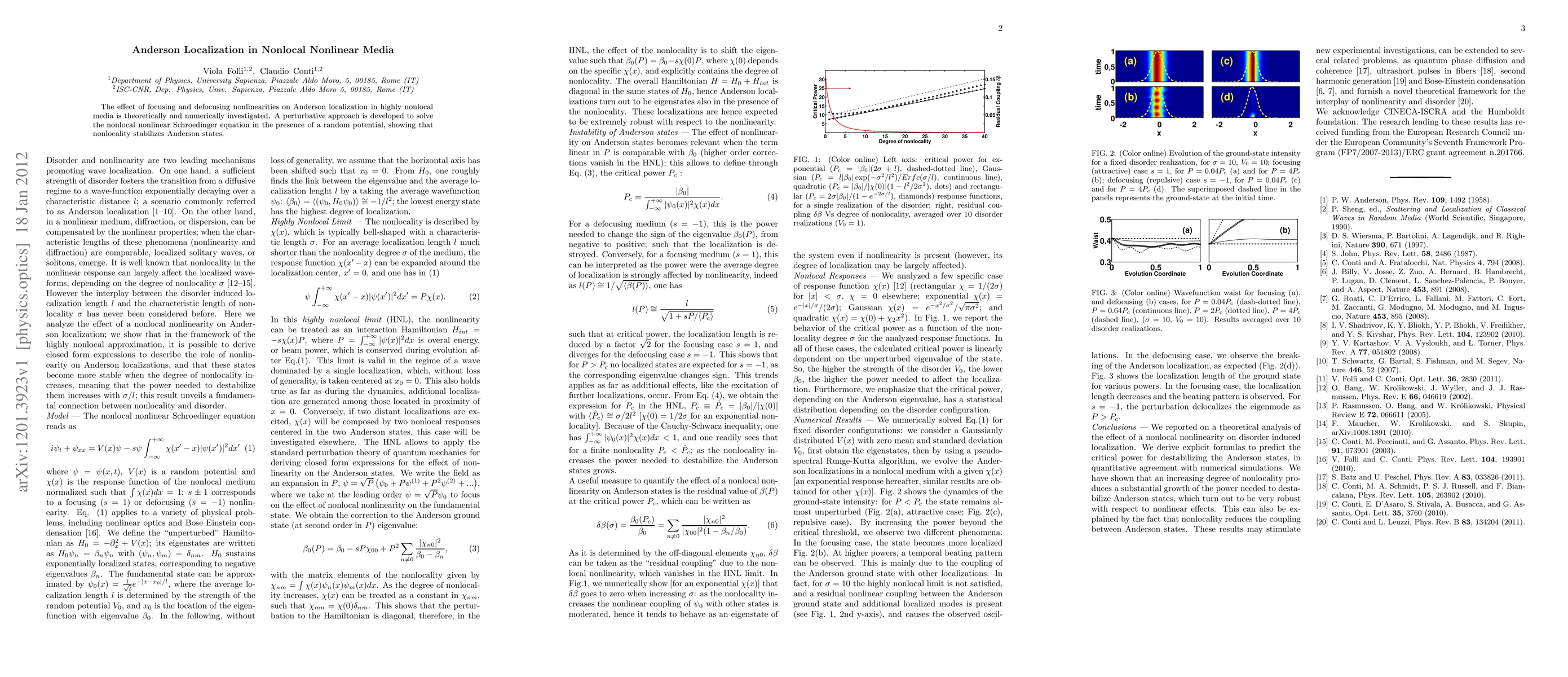 Summary: This research investigates Anderson localization in nonlocal nonlinear media, demonstrating through a perturbative approach that nonlocality stabilizes localized states in the presence of random potentials, regardless of whether the nonlinearity is focusing or defocusing.
