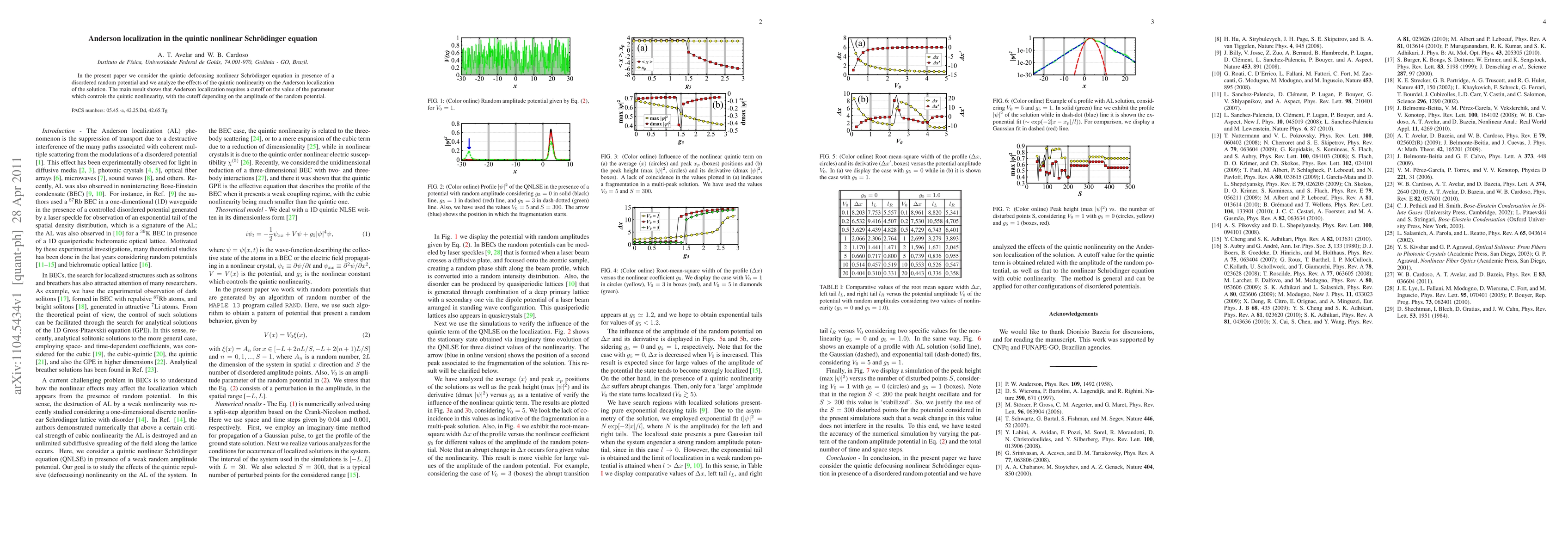 Summary: This paper examines the impact of quintic nonlinearity on Anderson localization in a disordered system described by the quintic defocusing nonlinear Schrödinger equation, finding that localization is contingent on a cutoff of the nonlinearity parameter, which varies with the potential's amplitude.