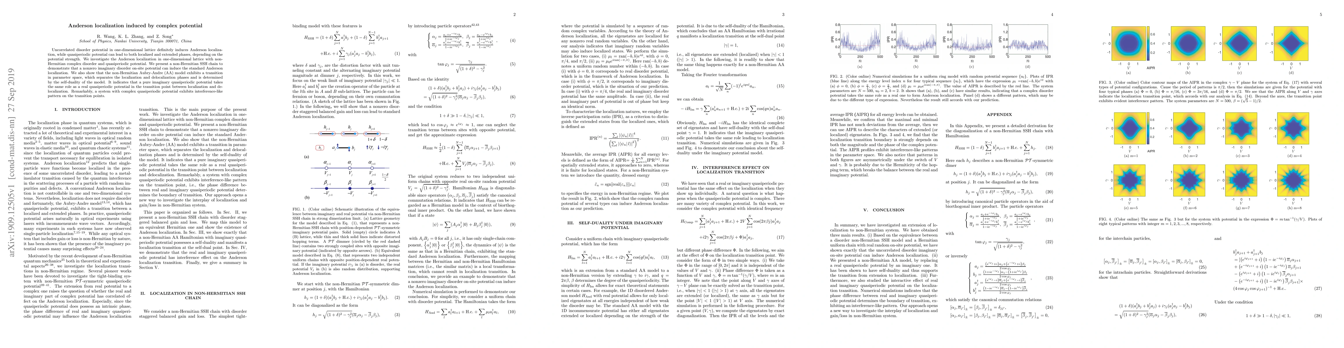 Uncorrelated disorder potential in one-dimensional lattice definitely induces Anderson localization, while quasiperiodic potential can lead to both localized and extended phases, depending on the potential strength. We investigate the Anderson localization in one-dimensional lattice with nonHermitian complex disorder and quasiperiodic potential. We present a non-Hermitian SSH chain to demonstrate that a nonzero imaginary disorder on-site potential can induce the standard Anderson localization. We also show that the non-Hermitian Aubry-Andre (AA) model exhibits a transition in parameter space, which separates the localization and delocalization phases and is determined by the self-duality of the model. It indicates that a pure imaginary quasiperiodic potential takes the same role as a real quasiperiodic potential in the transition point between localization and delocalization. Remarkably, a system with complex quasiperiodic potential exhibits interference-like pattern on the transition points.