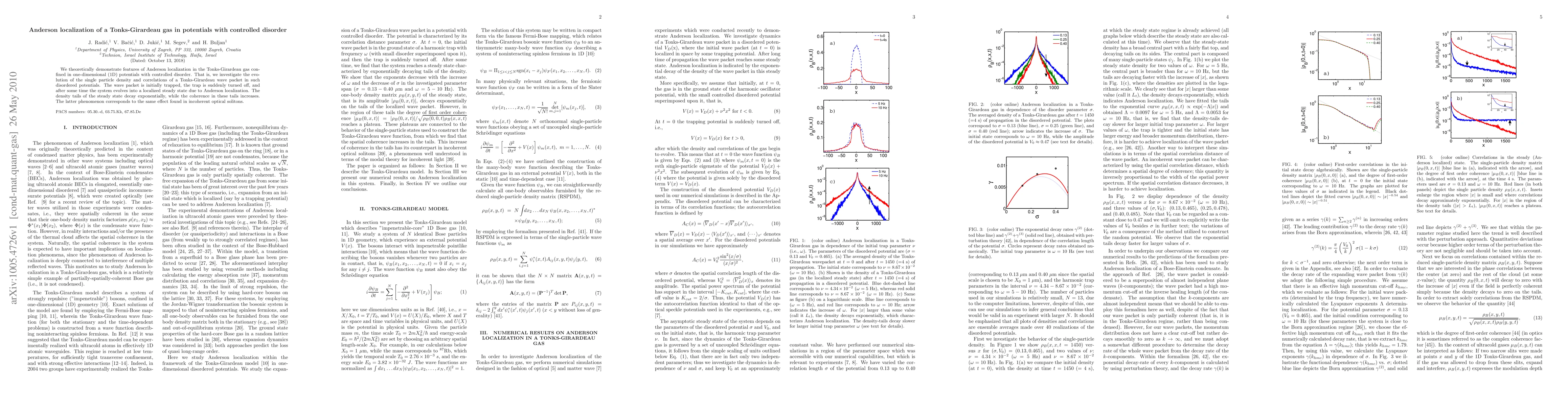 The study theoretically demonstrates Anderson localization in a 1D Tonks-Girardeau gas under controlled disorder, showing that the system evolves into a localized steady state with exponentially decaying density tails and increased coherence. This mimics the behavior seen in incoherent optical solitons.