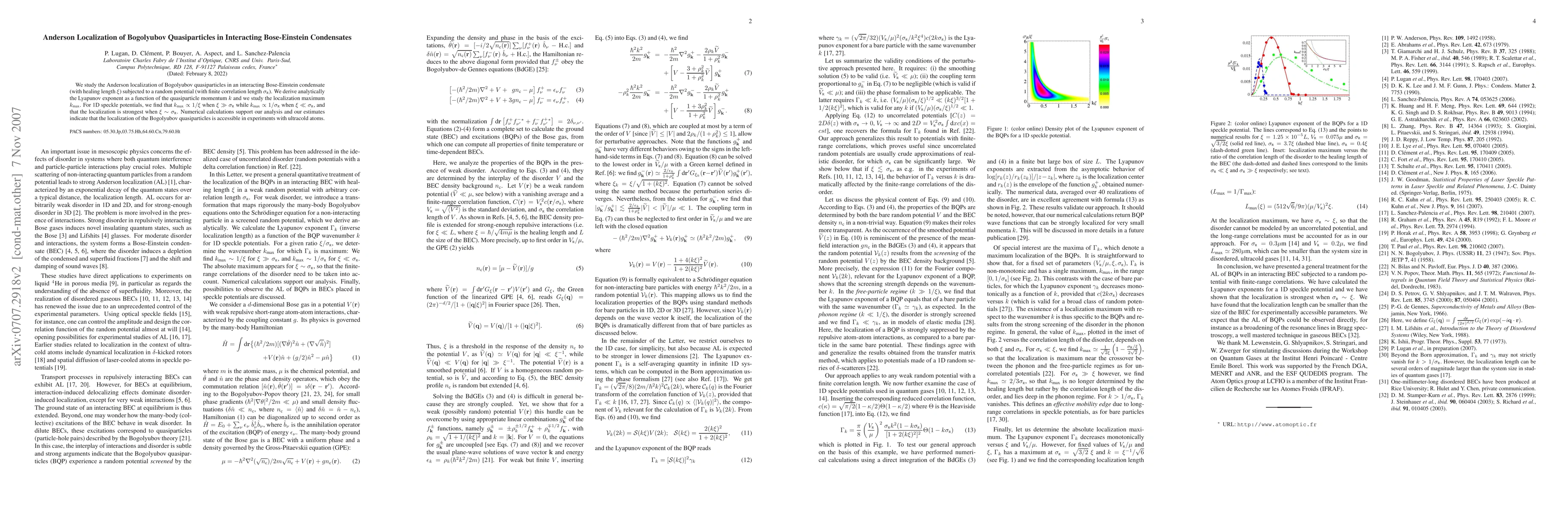 A general treatment for the AL of BQP in an interacting BEC subjected to a random potential with finite-range correlations.
