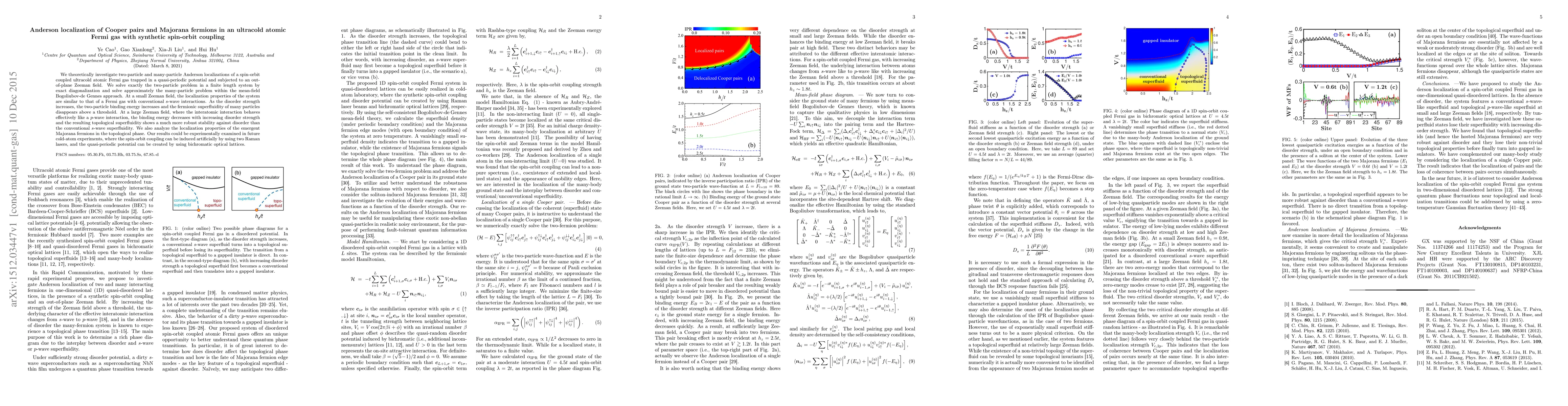 We theoretically investigate two-particle and many-particle Anderson localizations of a spin-orbit coupled ultracold atomic Fermi gas trapped in a quasi-periodic potential and subjected to an out-of-plane Zeeman field. We solve exactly the two-particle problem in a finite length system by exact diagonalization and solve approximately the many-particle problem within the mean-field Bogoliubov-de Gennes approach. At a small Zeeman field, the localization properties of the system are similar to that of a Fermi gas with conventional $s$-wave interactions. As the disorder strength increases, the two-particle binding energy increases and the fermionic superfluidity of many particles disappears above a threshold. At a large Zeeman field, where the interatomic interaction behaves effectively like a $p$-wave interaction, the binding energy decreases with increasing disorder strength and the resulting topological superfluidity shows a much more robust stability against disorder than the conventional $s$-wave superfluidity. We also analyze the localization properties of the emergent Majorana fermions in the topological phase. Our results could be experimentally examined in future cold-atom experiments, where the spin-orbit coupling can be induced artificially by using two Raman lasers, and the quasi-periodic potential can be created by using bichromatic optical lattices.