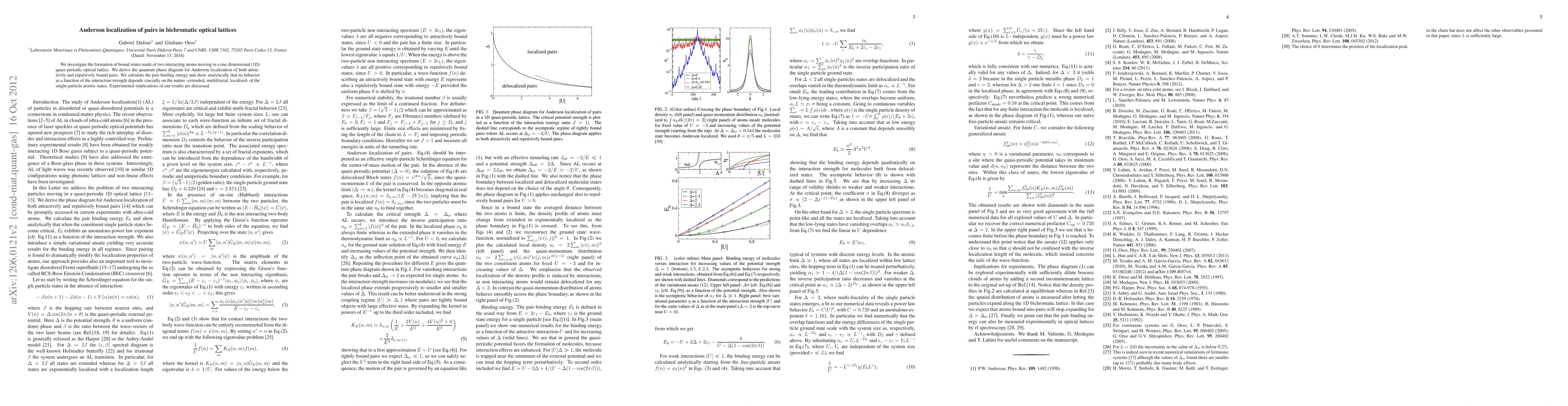 We investigate the formation of bound states made of two interacting atoms moving in a one dimensional (1D) quasi-periodic optical lattice. We derive the quantum phase diagram for Anderson localization of both attractively and repulsively bound pairs. We calculate the pair binding energy and show analytically that its behavior as a function of the interaction strength depends crucially on the nature -extended, multi-fractal, localized- of the single-particle atomic states. Experimental implications of our results are discussed.