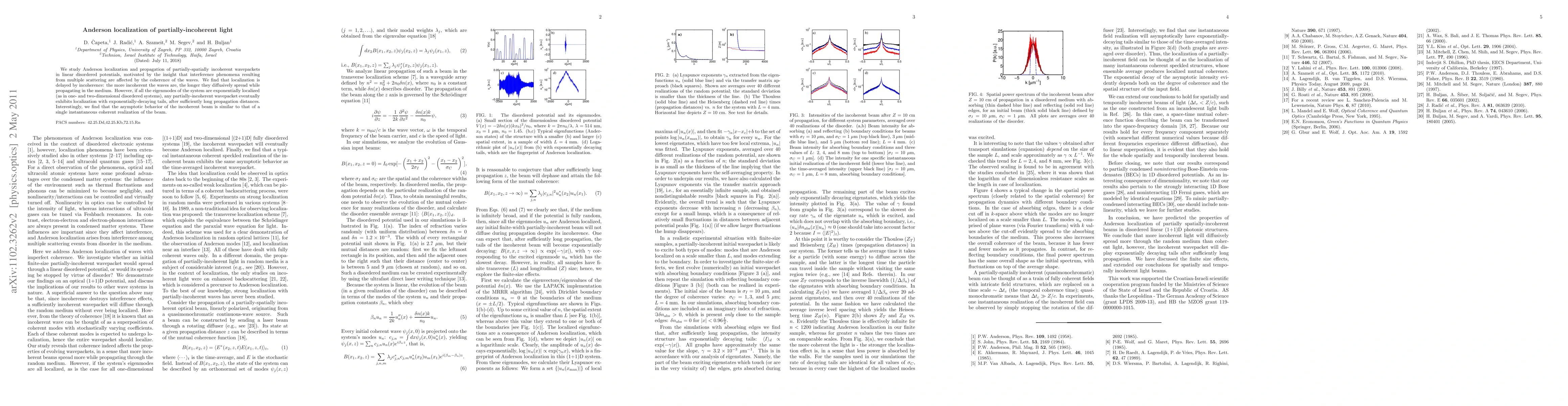 Anderson localization delays for partially-incoherent light in disordered media is demonstrated; increased incoherence leads to longer diffusive propagation before localization, but ultimately results in exponential decay for sufficiently long distances. The asymptotic behavior of incoherent beams mirrors that of a coherent realization.