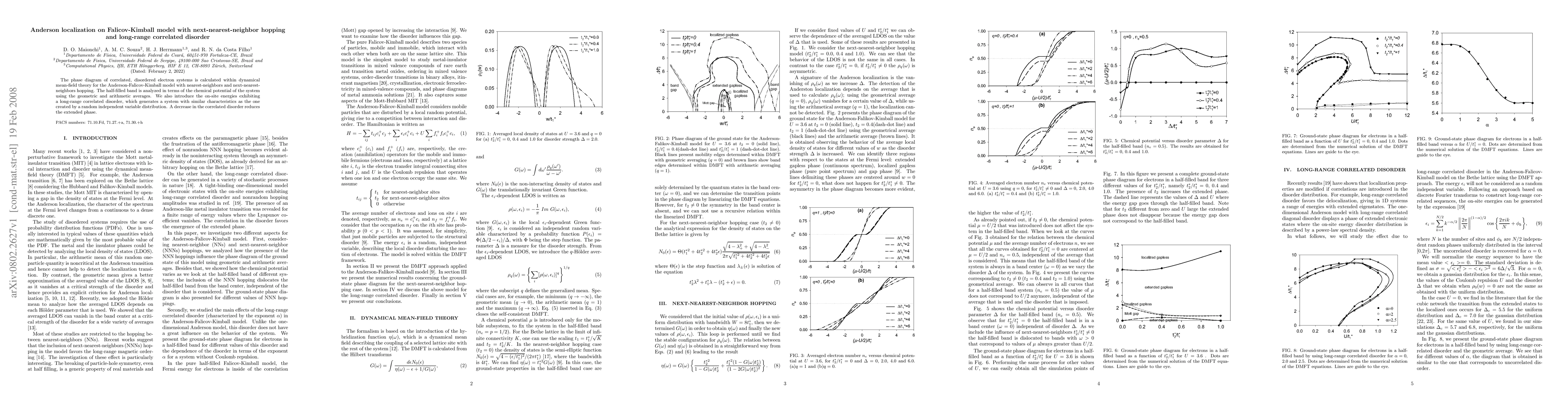 The phase diagram of correlated, disordered electron systems is calculated within dynamical mean-field theory for the Anderson-Falicov-Kimball model with nearest-neighbors and next-nearest-neighbors hopping. The half-filled band is analyzed in terms of the chemical potential of the system using the geometric and arithmetic averages. We also introduce the on-site energies exhibiting a long-range correlated disorder, which generates a system with similar characteristics as the one created by a random independent variable distribution. A decrease in the correlated disorder reduces the extended phase.