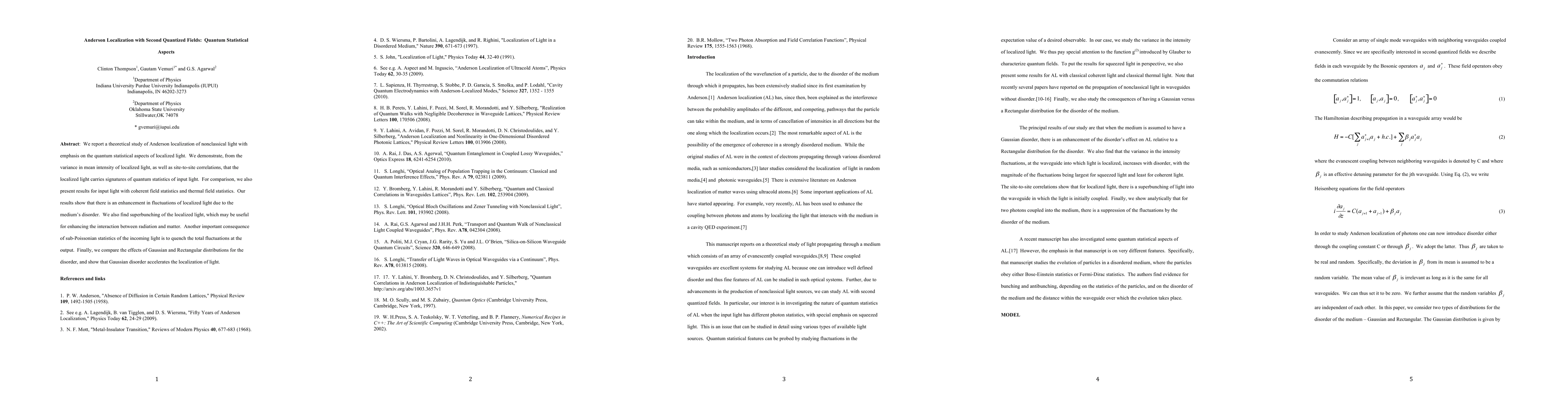 This paper investigates Anderson localization of nonclassical light, focusing on its quantum statistical properties. It shows that localized light retains the quantum statistics of the input light, with enhanced fluctuations and superbunching due to disorder, which could enhance radiation-matter interactions.
