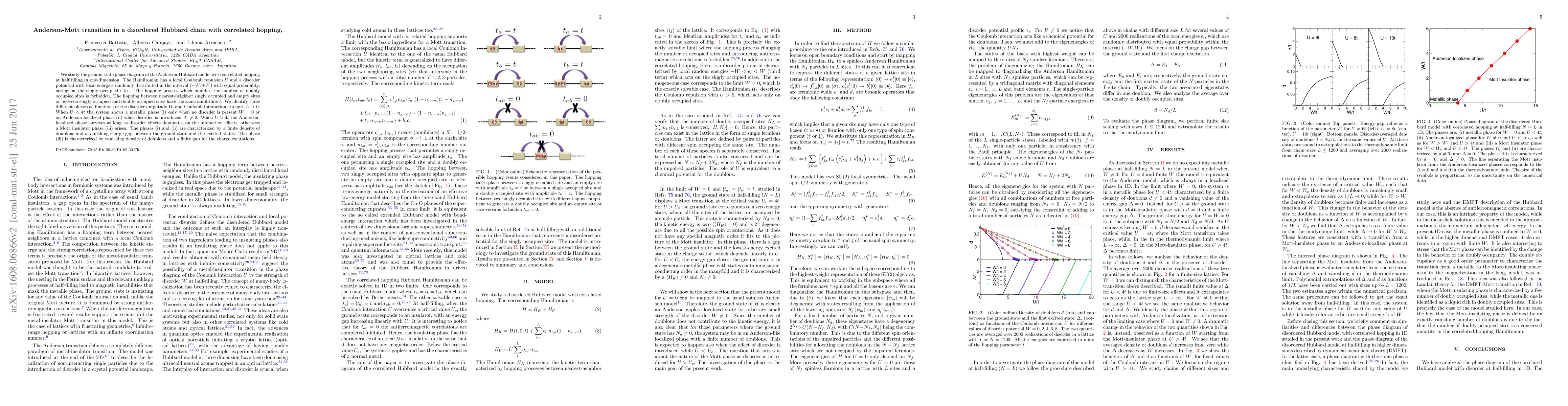 This paper investigates the ground state phase diagram of a one-dimensional Anderson-Hubbard model with correlated hopping, identifying three phases: a metallic phase with no disorder and a localized phase with disorder when Coulomb interaction is weak, and a Mott insulator phase when interaction dominates. The localized phase has a finite doublon density and vanishing charge gap, while the Mott insulator phase has none and a finite gap.