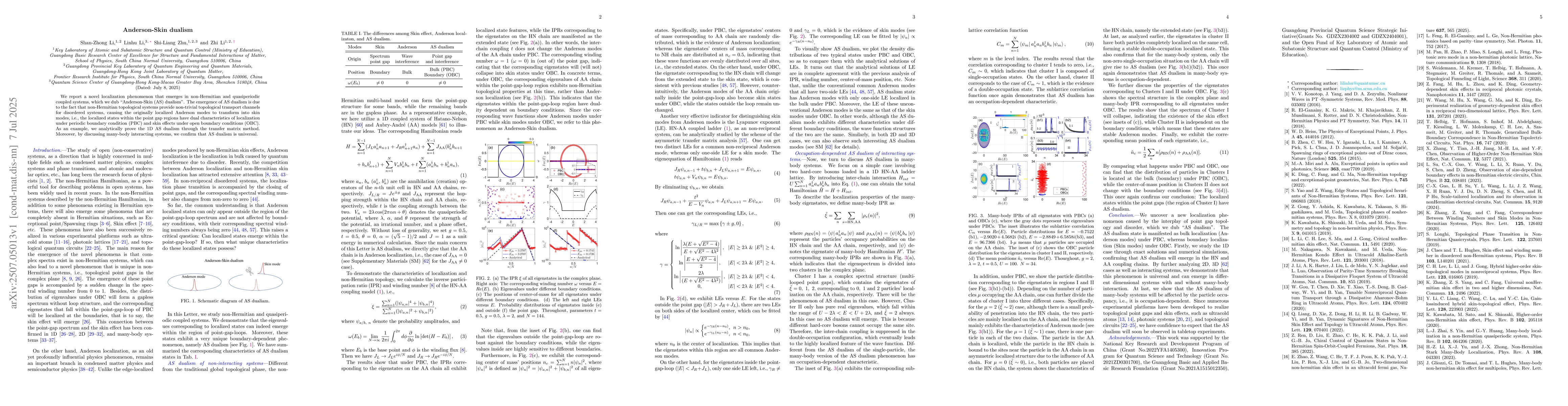 We report a novel localization phenomenon that emerges in non-Hermitian and quasiperiodic coupled systems, which we dub ``Anderson-Skin (AS) dualism". The emergence of AS dualism is due to the fact that non-Hermitian topological systems provide non-trivial topological transport channels for disordered systems, causing the originally localized Anderson modes to transform into skin modes, i.e., the localized states within the point gap regions have dual characteristics of localization under periodic boundary condition (PBC) and skin effects under open boundary conditions (OBC). As an example, we analytically prove the 1D AS dualism through the transfer matrix method. Moreover, by discussing many-body interacting systems, we confirm that AS dualism is universal.