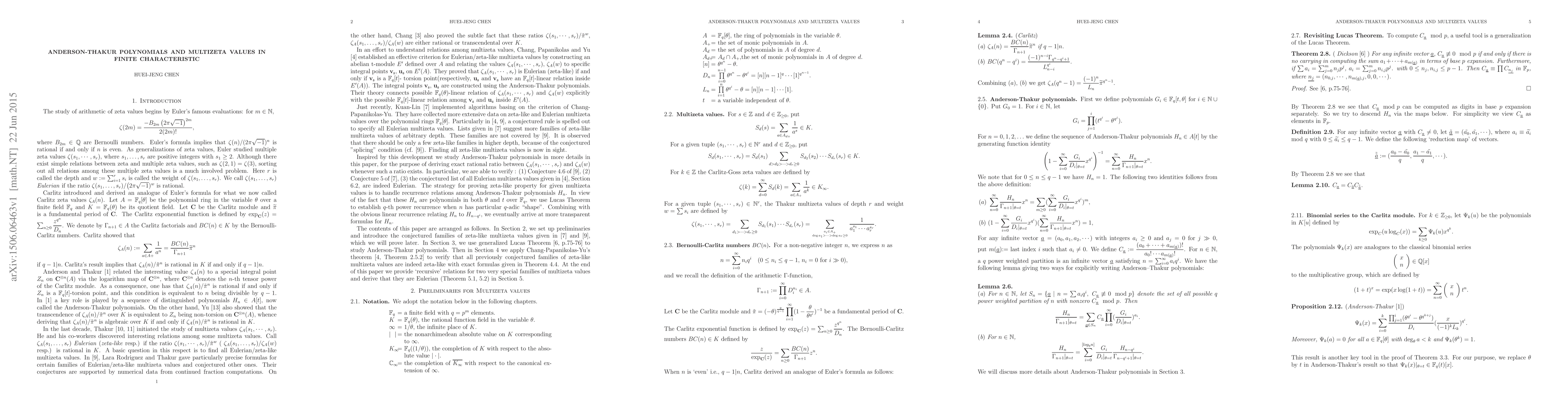 The paper presents a formula for certain Anderson-Thakur polynomials and confirms conjectured zeta-like families of multizeta values introduced in positive characteristic by Thakur and further developed by Kuan and Lin.