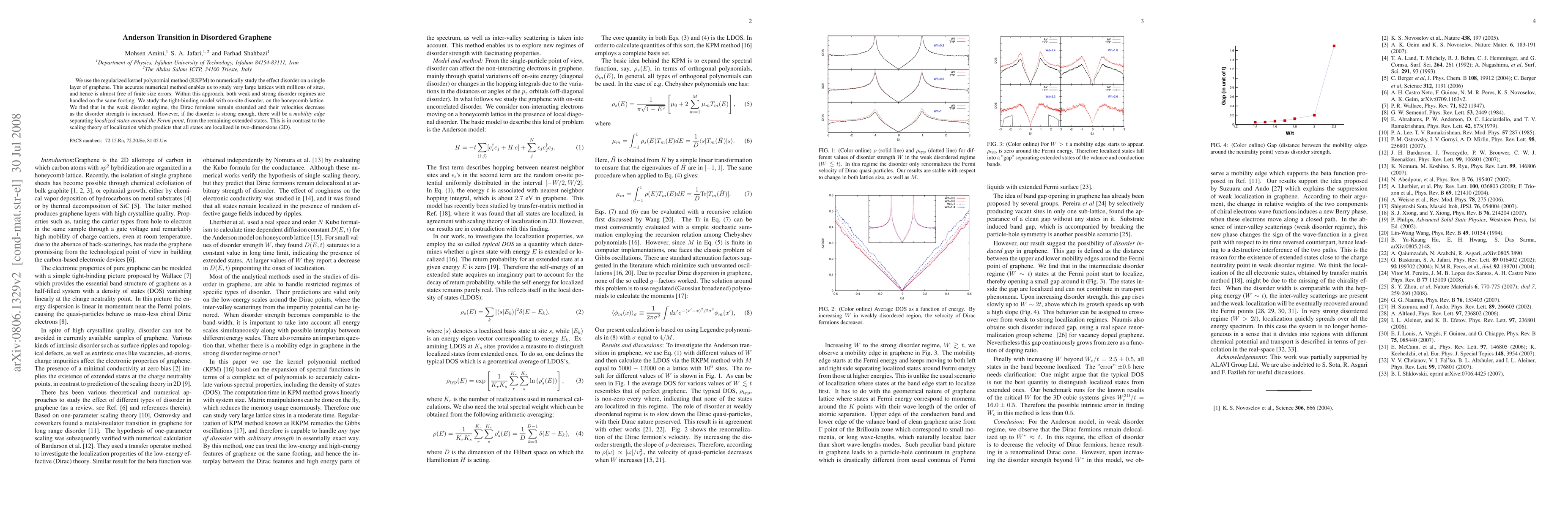 We use the regularized kernel polynomial method (RKPM) to numerically study the effect disorder on a single layer of graphene. This accurate numerical method enables us to study very large lattices with millions of sites, and hence is almost free of finite size errors. Within this approach, both weak and strong disorder regimes are handled on the same footing. We study the tight-binding model with on-site disorder, on the honeycomb lattice. We find that in the weak disorder regime, the Dirac fermions remain extended and their velocities decrease as the disorder strength is increased. However, if the disorder is strong enough, there will be a {\em mobility edge} separating {\em localized states around the Fermi point}, from the remaining extended states. This is in contrast to the scaling theory of localization which predicts that all states are localized in two-dimensions (2D).