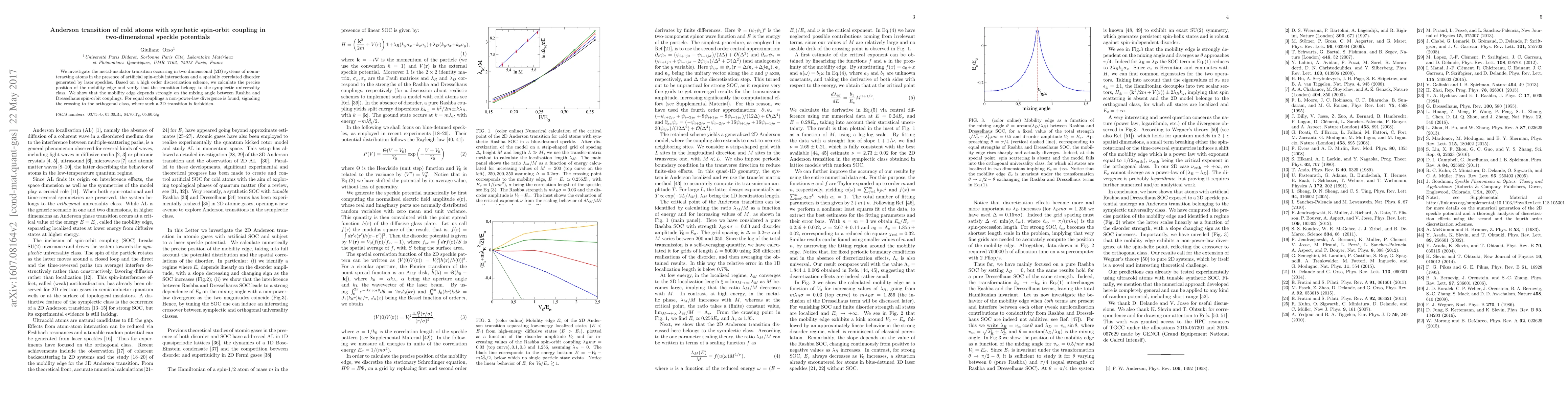 We investigate the metal-insulator transition occurring in two-dimensional (2D) systems of noninteracting atoms in the presence of artificial spin-orbit interactions and a spatially correlated disorder generated by laser speckles. Based on a high order discretization scheme, we calculate the precise position of the mobility edge and verify that the transition belongs to the symplectic universality class. We show that the mobility edge depends strongly on the mixing angle between Rashba and Dresselhaus spin-orbit couplings. For equal couplings a non-power-law divergence is found, signaling the crossing to the orthogonal class, where such a 2D transition is forbidden.