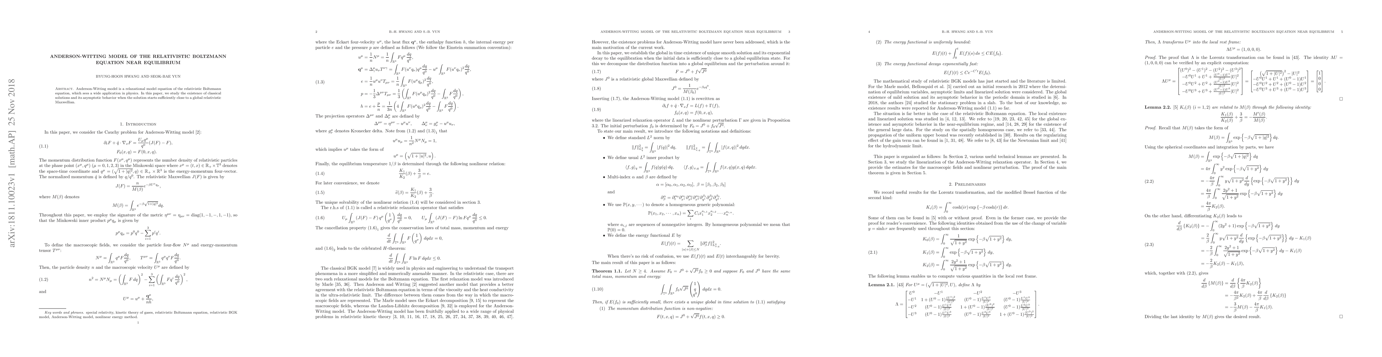 This paper investigates the Anderson-Witting model, a relaxational form of the relativistic Boltzmann equation, focusing on the existence and asymptotic behavior of classical solutions when they start near a global relativistic Maxwellian equilibrium.