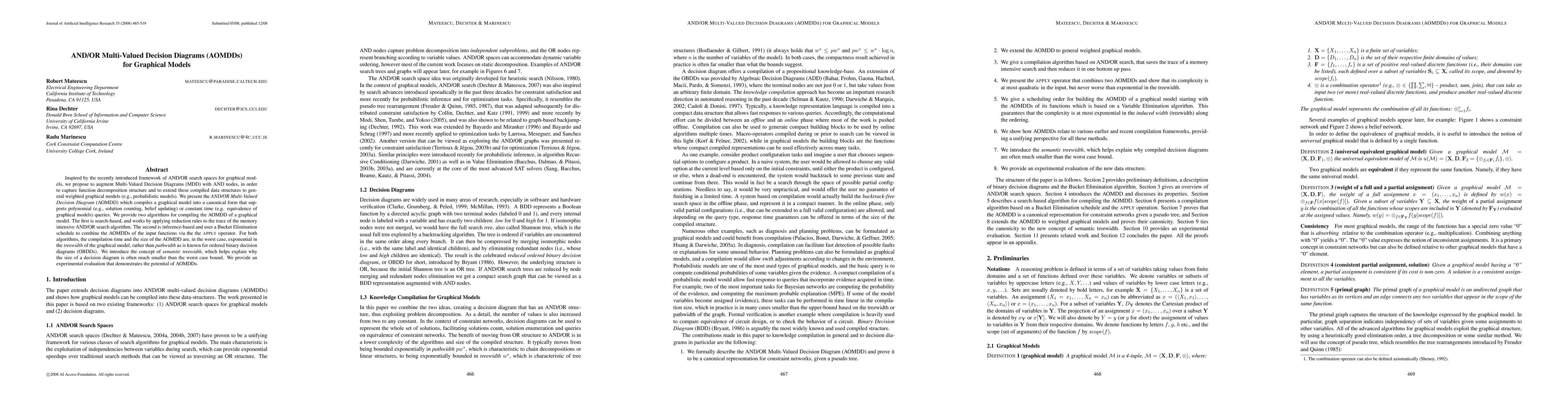 This research extends MDDs to AND/OR search spaces, providing a novel approach for compiling general weighted graphical models into a canonical form supporting efficient queries.