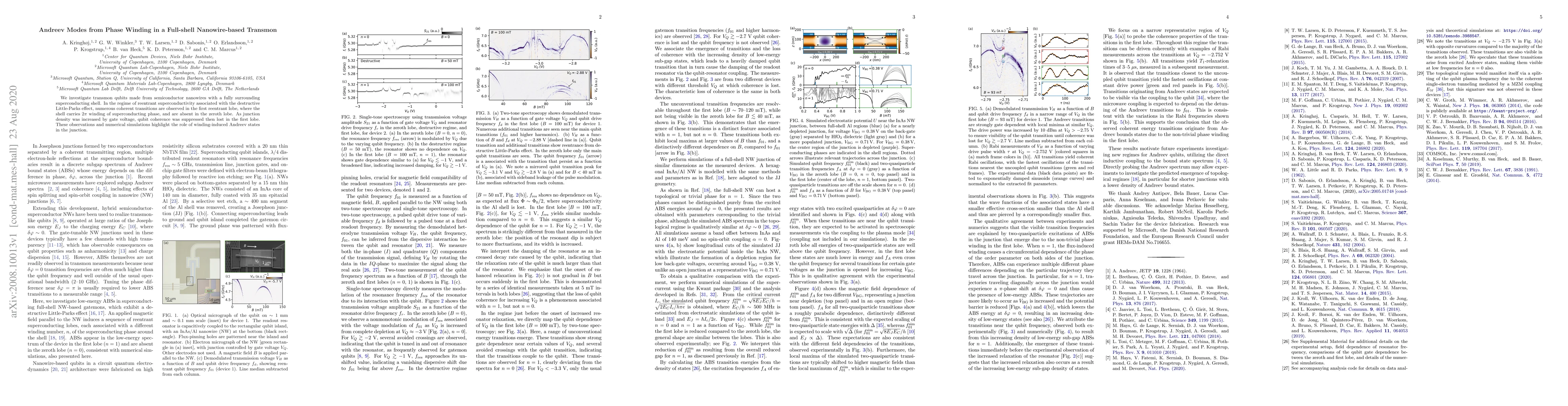 This research explores transmon qubits in semiconductor nanowires with superconducting shells, finding that Andreev modes emerge due to phase winding in the first reentrant lobe, leading to coherent transitions. As gate voltage increases junction density, coherence is suppressed, underscoring the significance of winding-induced Andreev states.